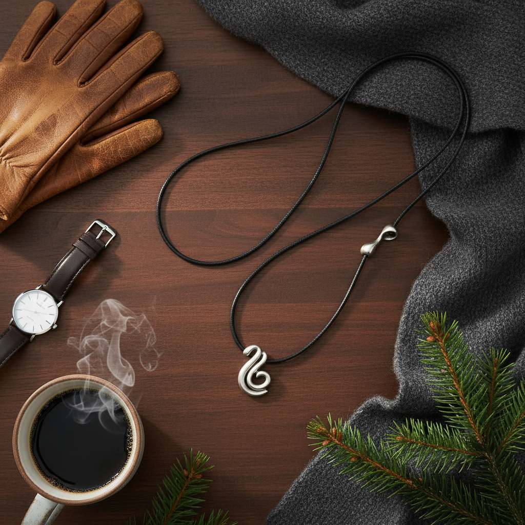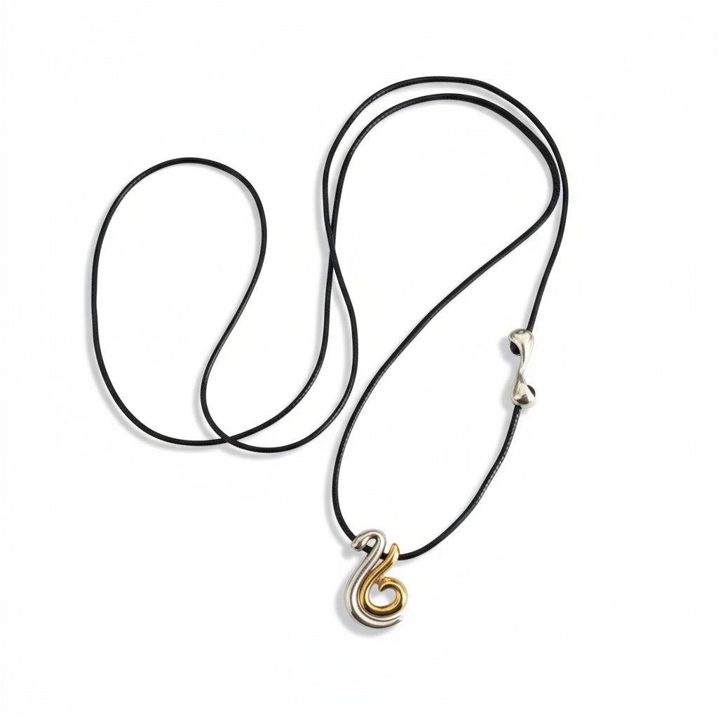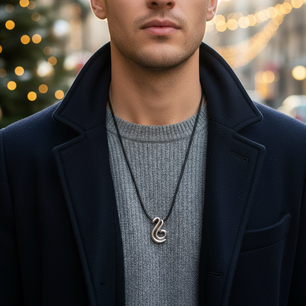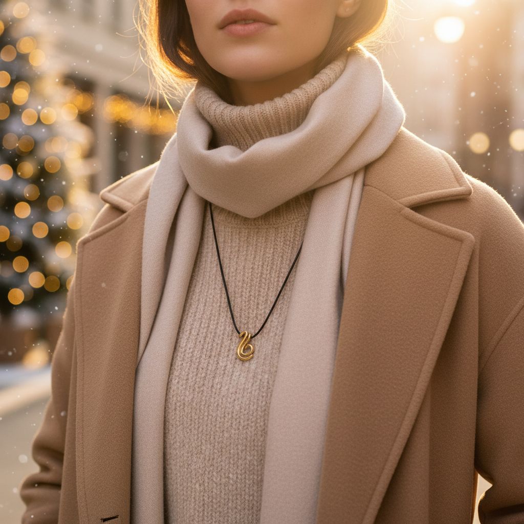 Χειροποίητο γούρι-κολιέ με διπλό μοτίφ 26 σε καμπυλωτό design που συμβολίζει τη νέα χρονιά. Το κρεμαστό συνδυάζει μοντέρνα αισθητική με διαχρονικότητα, ενώ το μαύρο κορδόνι (μήκος 80 εκ., αυξομειούμενο) προσφέρει άνετη εφαρμογή για κάθε στυλ.