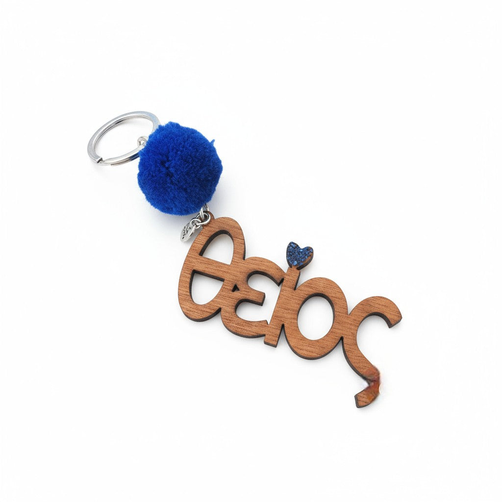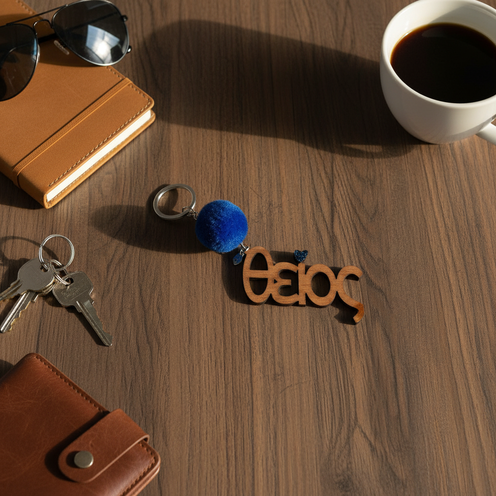 Θείος – Ανδρικό Ξύλινο Μπρελόκ με Πον Πον & Γκλίτερ Καρδούλα
