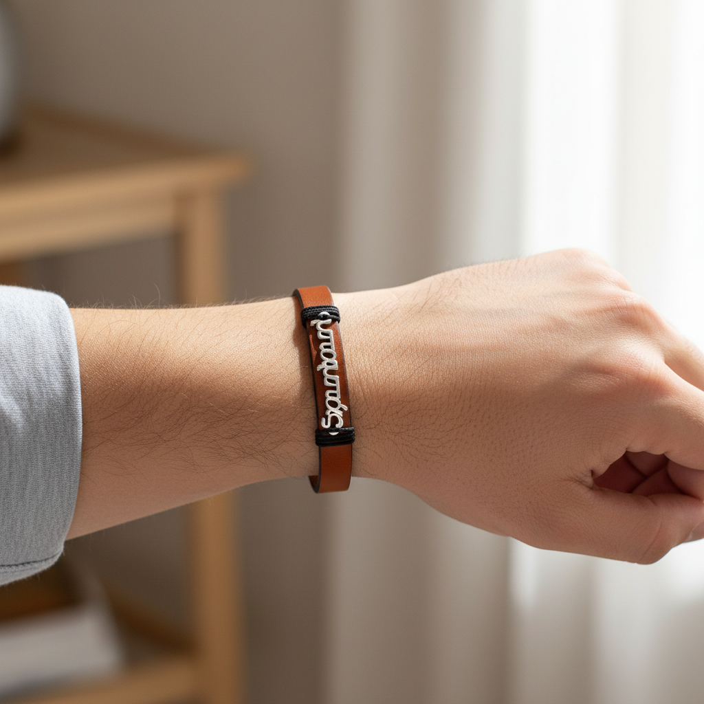 Ανδρικό Δερμάτινο Βραχιόλι “Μπαμπάς” με Ταυτότητα