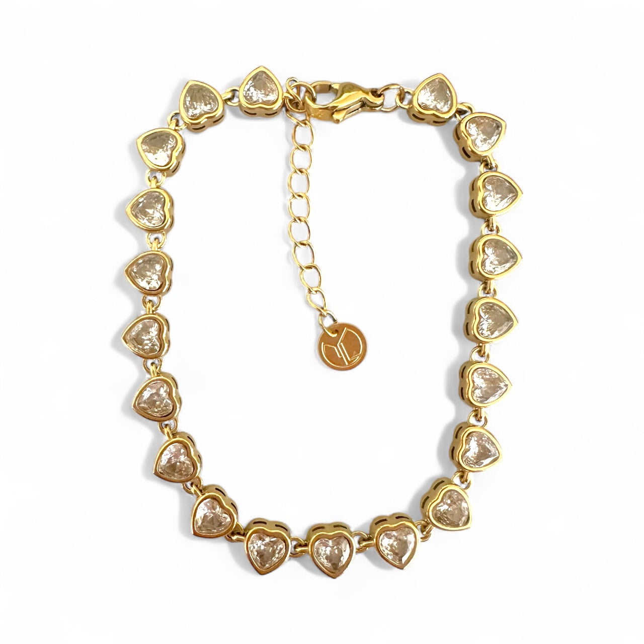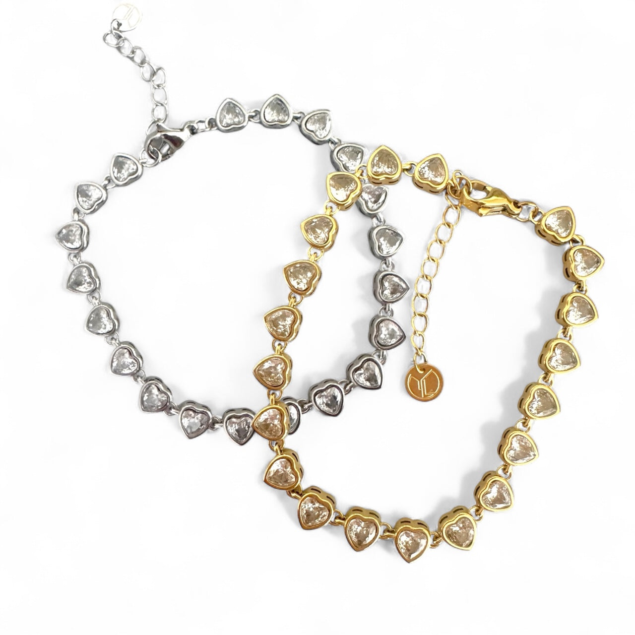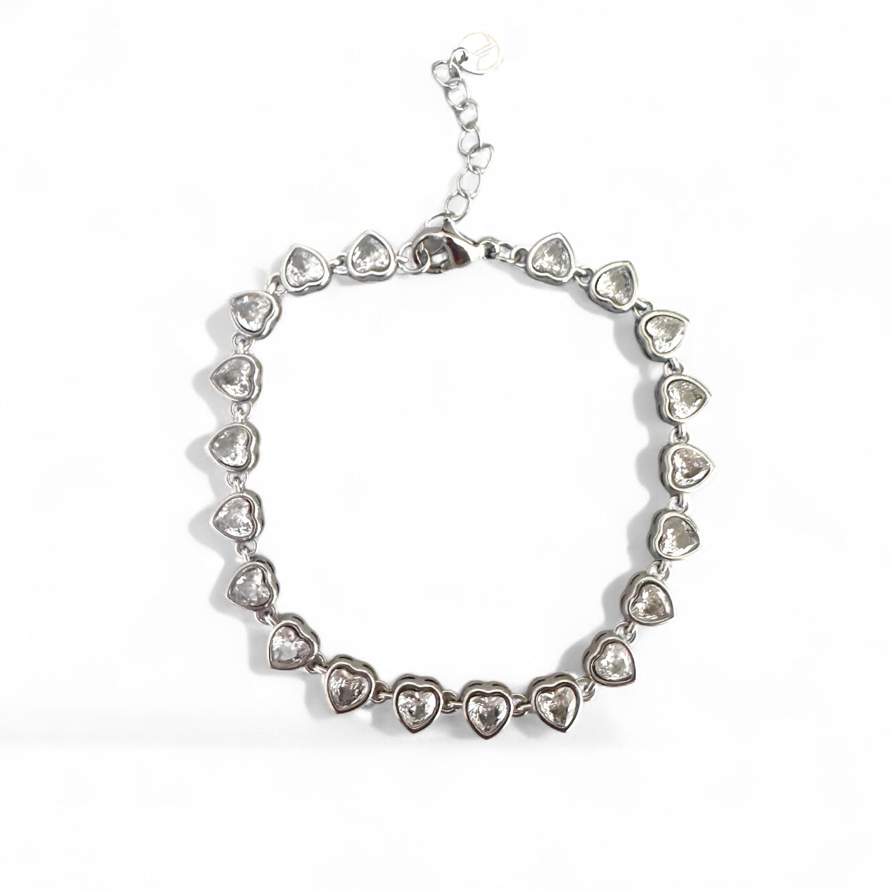 Heart Sparkle – Ατσάλινο Βραχιόλι με Καρδιές Ζιργκόν