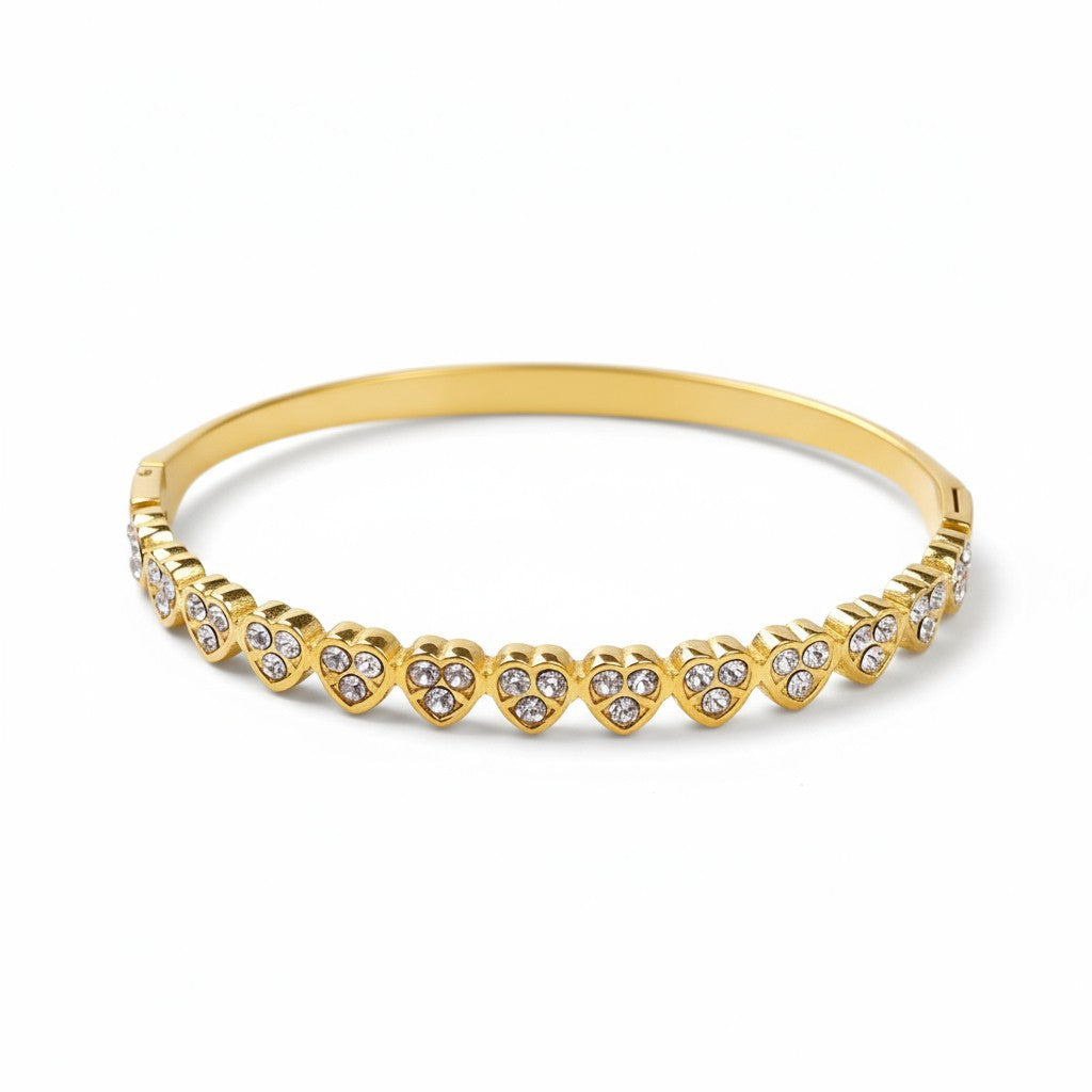 Ατσάλινο Βραχιόλι Golden Hearts με Στρας