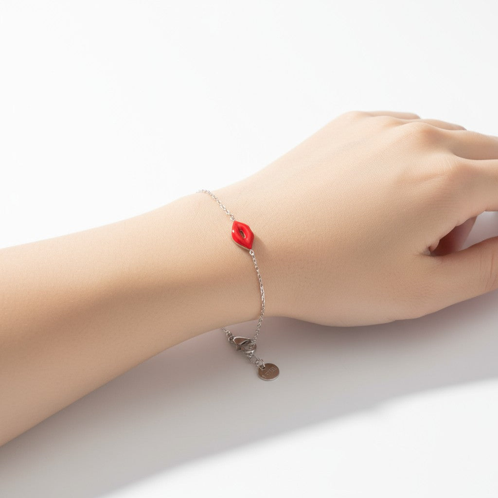Το Red Lips είναι ατσάλινο βραχιόλι με λεπτή αλυσίδα και charm σε σχήμα κόκκινα χείλη από σμάλτο. Minimal αλλά και bold, συνδυάζει girly διάθεση με fashion statement αισθητική.