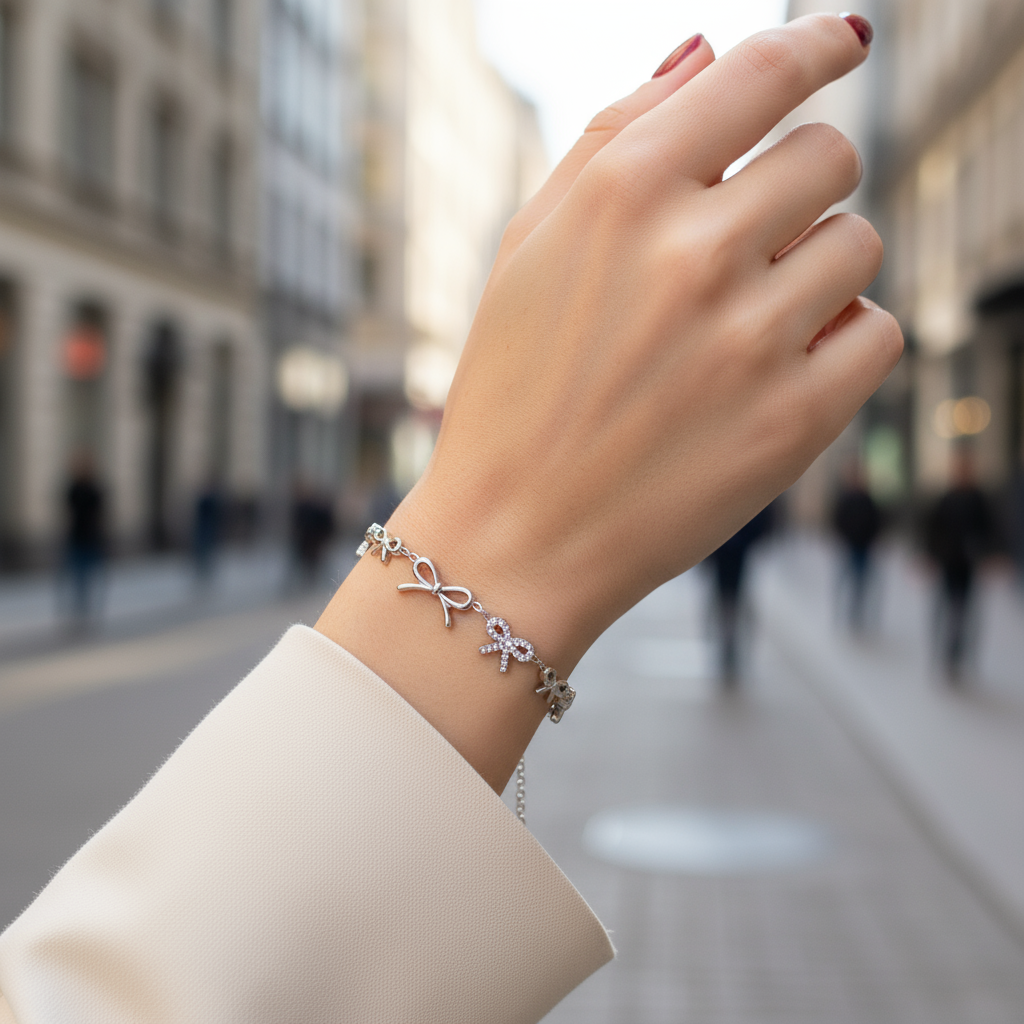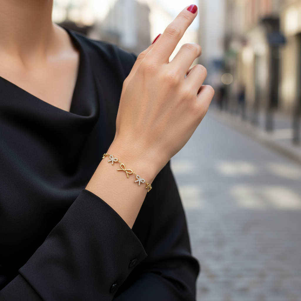 ⚡🚚 Βραχιόλι “Bowtiful” με Μοτίφ Φιόγκου & Ζιργκόν