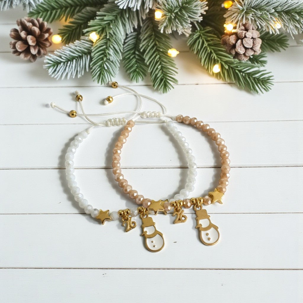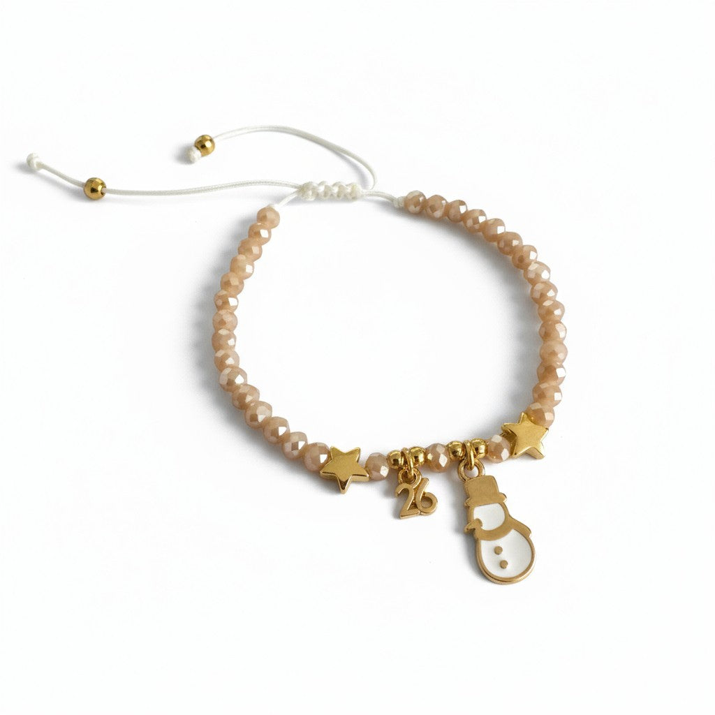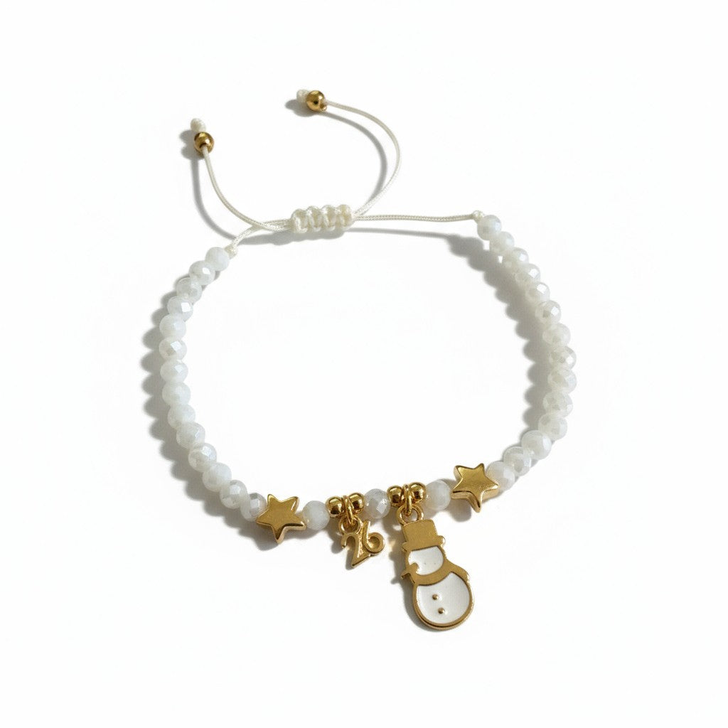 Βραχιόλι-Γούρι με χιονανθρωπάκι & κρυστάλλινες χάντρες ✨