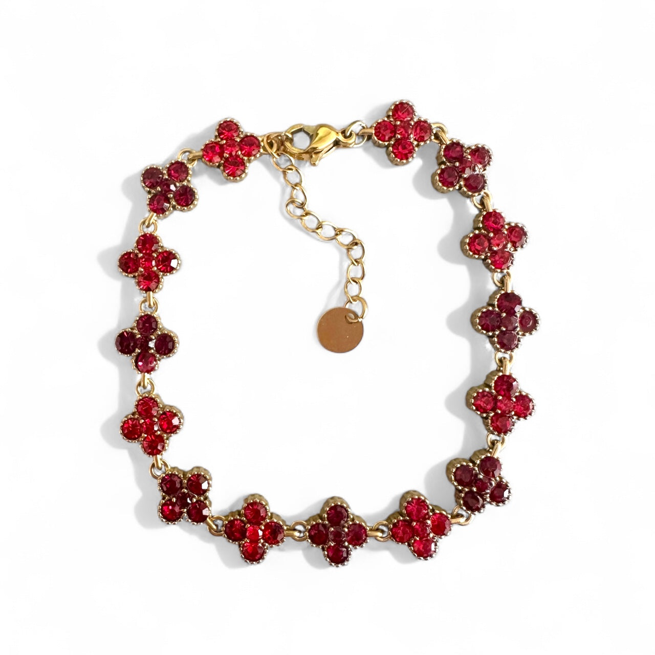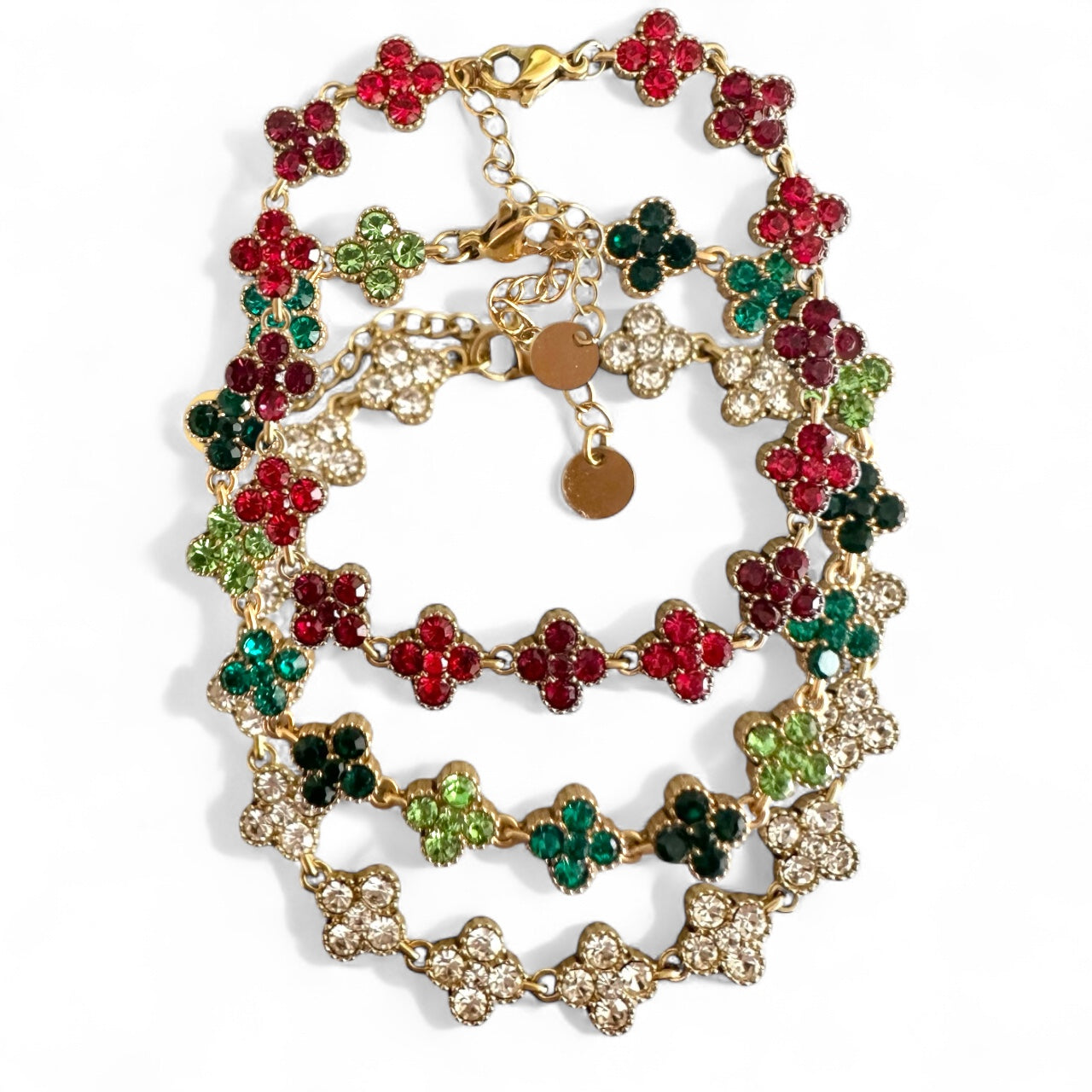 Λαμπερά ζιργκόν επάνω σε κομψά μοτίβα “cross/flower” δίνουν glam λάμψη, ενώ το ρυθμιζόμενο μήκος 16+3 εκ. εξασφαλίζει άνετη εφαρμογή για κάθε καρπό. Διαθέσιμο σε 3 αποχρώσεις: λευκό, κόκκινο, πράσινο.