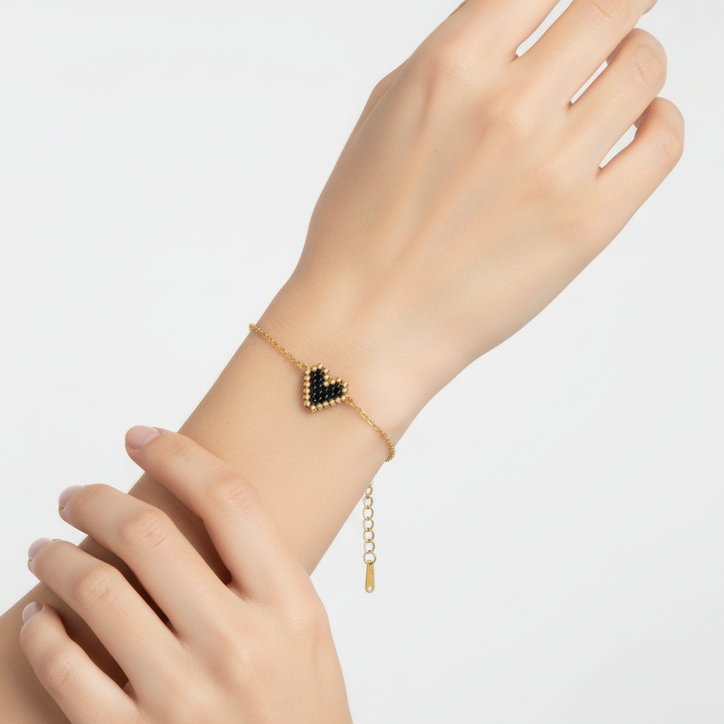 ο “Heartbit” είναι ένα γλυκό και ζωηρό βραχιόλι με καρδιά από miyuki beads και χρυσή ατσάλινη αλυσίδα.