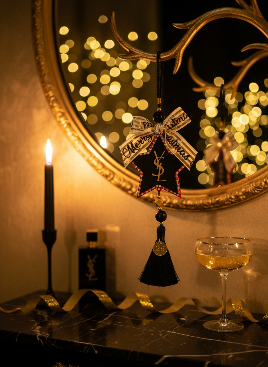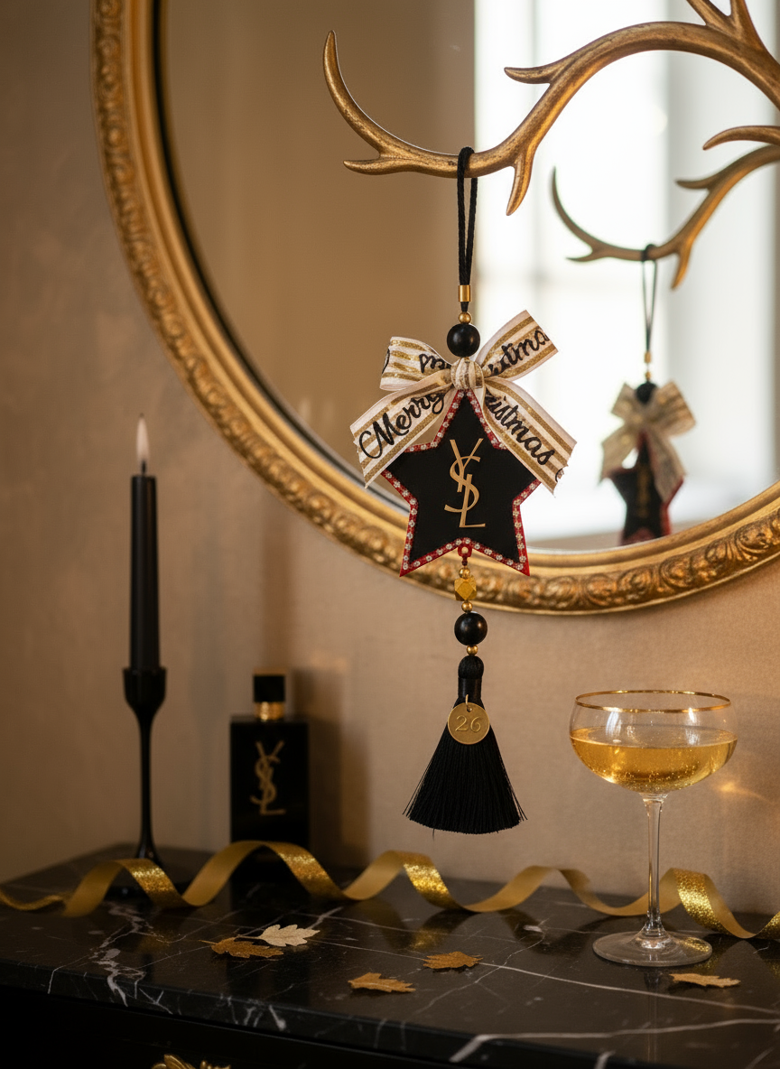 Γούρι 2026 Couture Αστέρι YSL με Κορδέλα & Στρας – Κρεμαστό | Συλλογή Christmas Couture