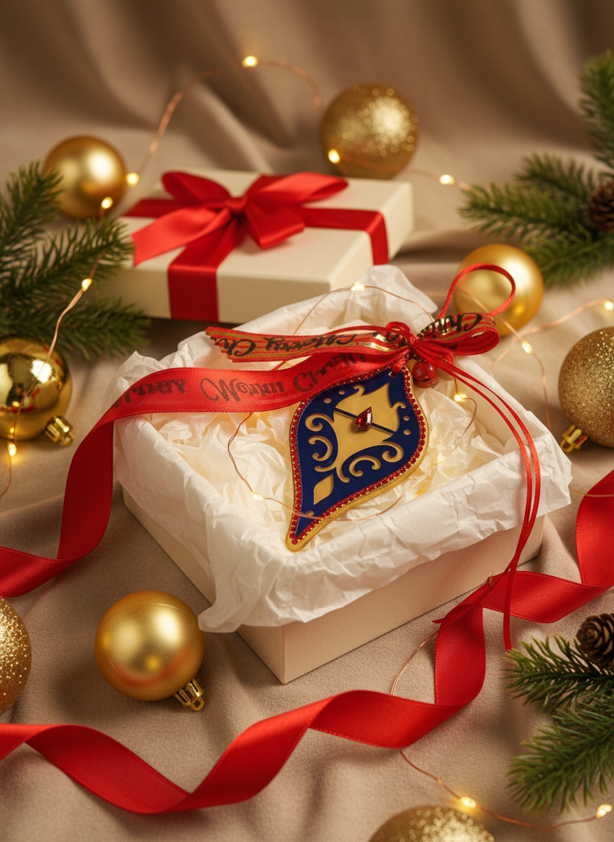 Ένα γούρι που αποπνέει πολυτέλεια, καλή τύχη και γιορτινή χαρά, ιδανικό για να χαρίσεις ή να στολίσεις το δέντρο σου με λάμψη.