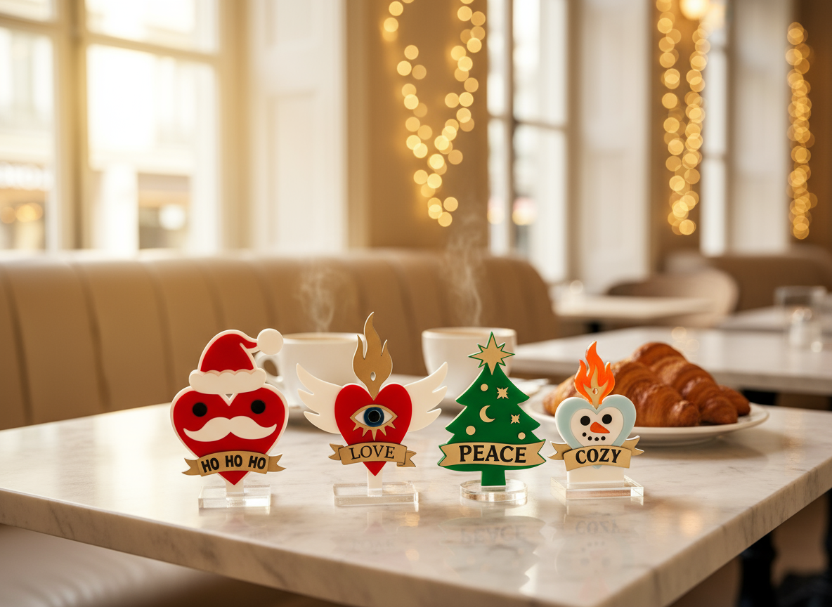 ❤️ Επιτραπέζιο Γούρι «Christmas Pop Love Heart» – Plexiglass με Φλόγα & Φτερά