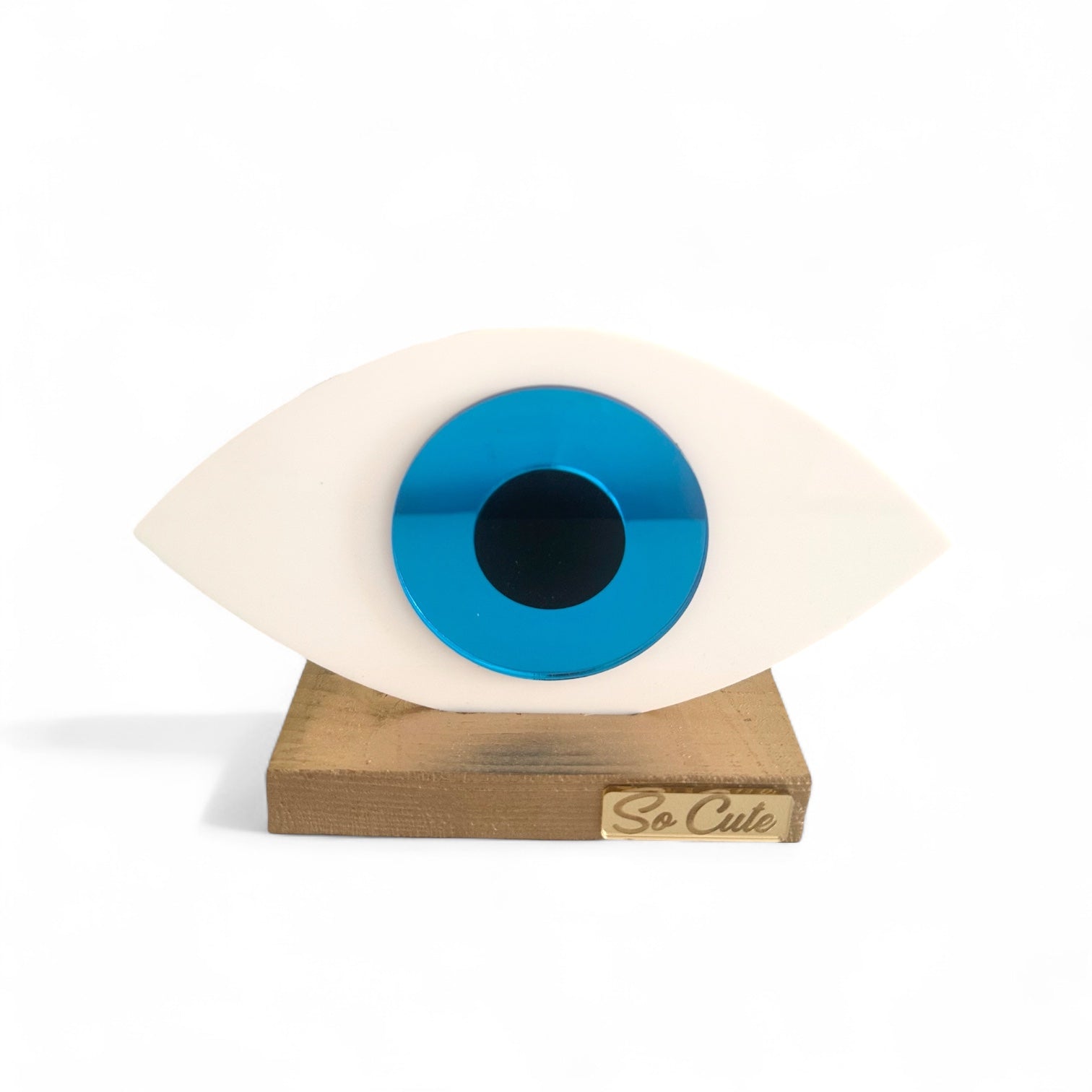 Γούρι Οβάλ Μάτι Plexiglass σε Ξύλινη Βάση – Μπλε