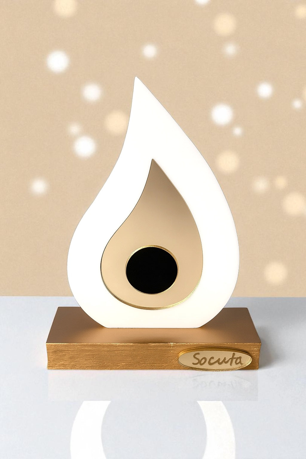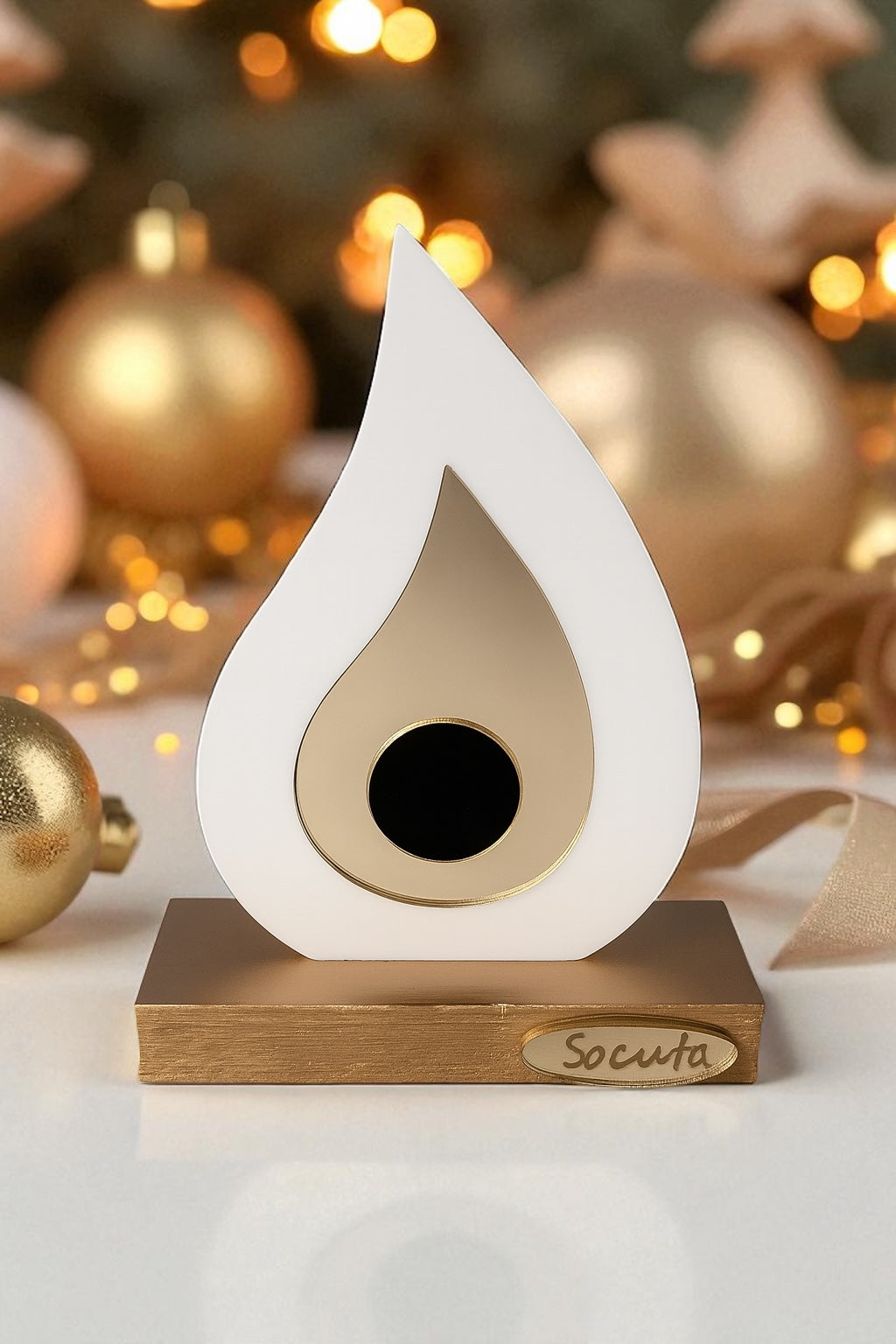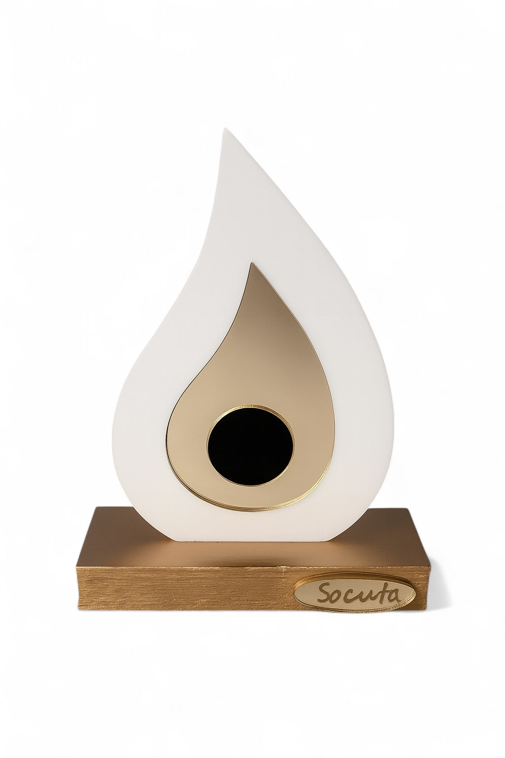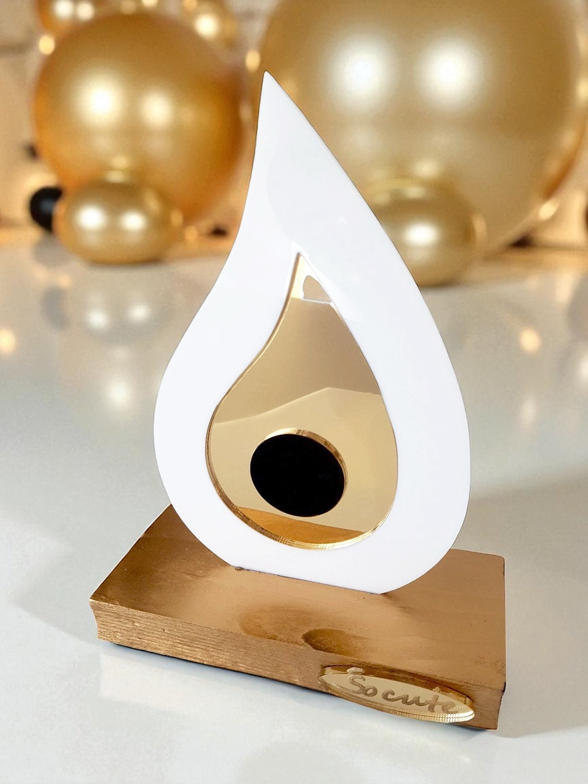 Γούρι Plexiglass Σταγόνα Λευκό με Μάτι Χρυσό | Επιτραπέζιο Διακοσμητικό