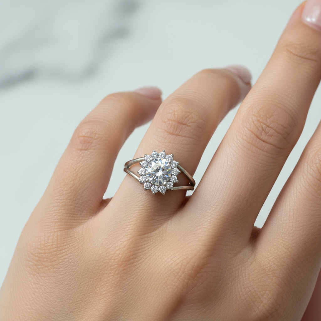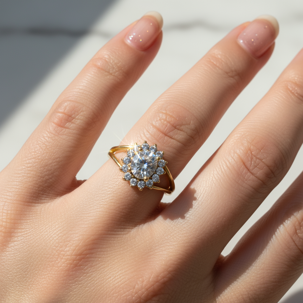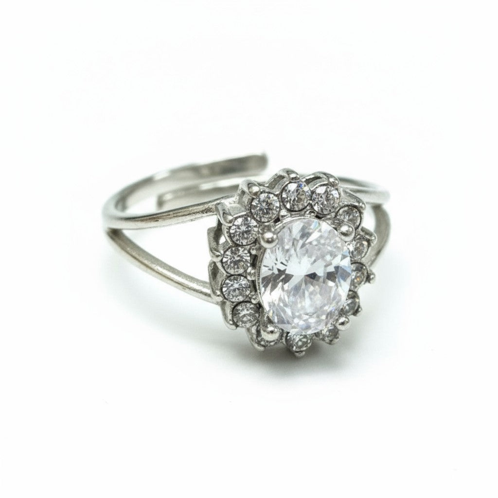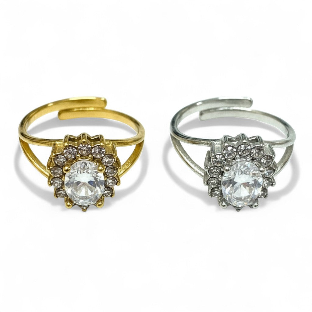 Crystal Bloom Ring – Ατσάλινο Δαχτυλίδι με Ζιργκόν Halo