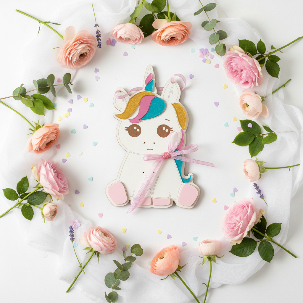 Ένα υπέροχο δώρο για κοριτσάκια που λατρεύουν τους μονόκερους, αλλά και μία ιδιαίτερη προσθήκη για baby room, βάπτιση, γενέθλια ή διακόσμηση εποχής.