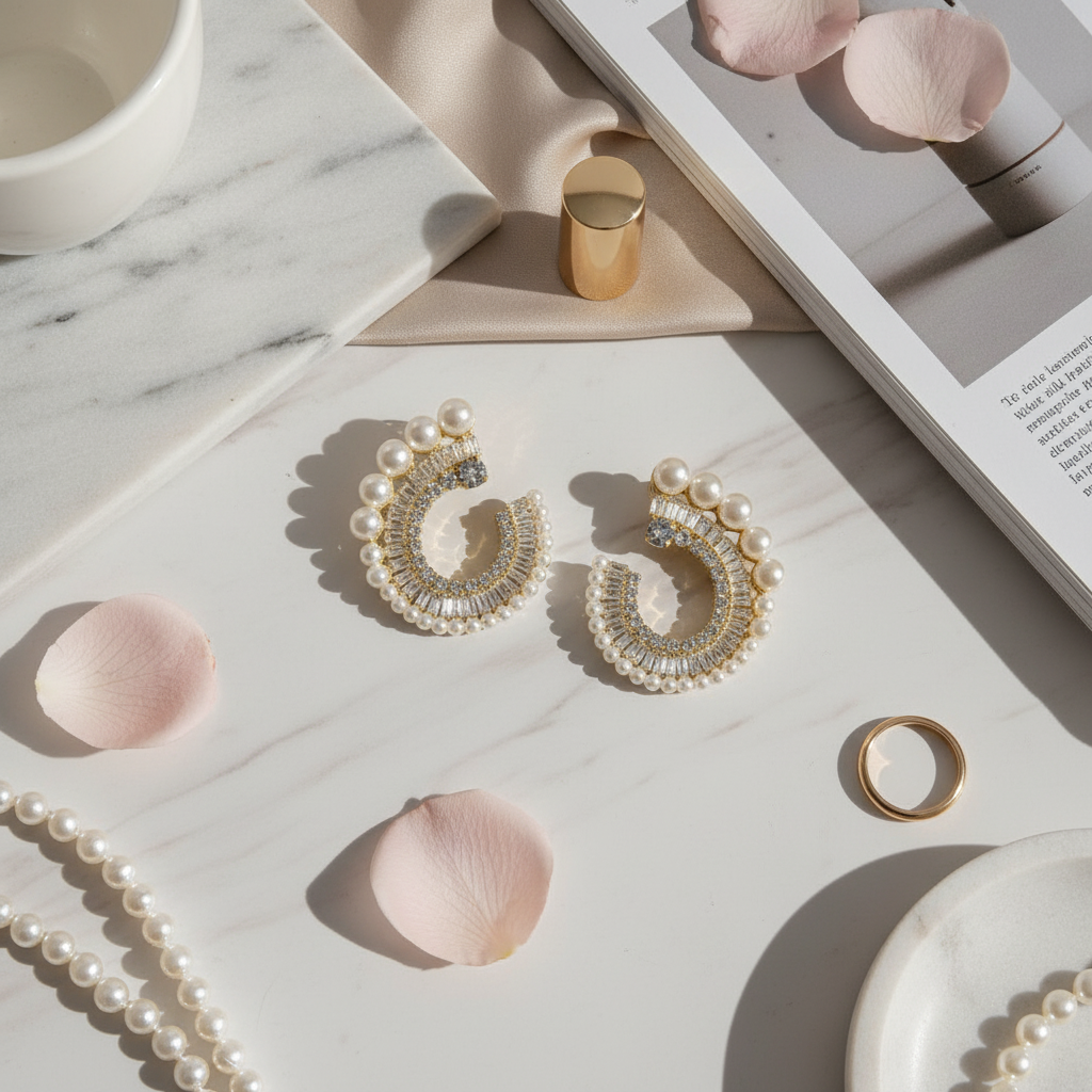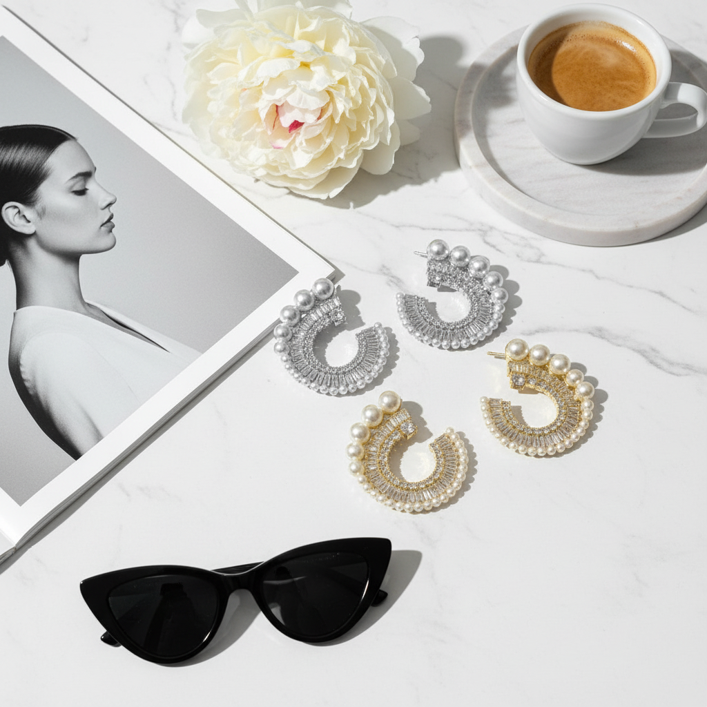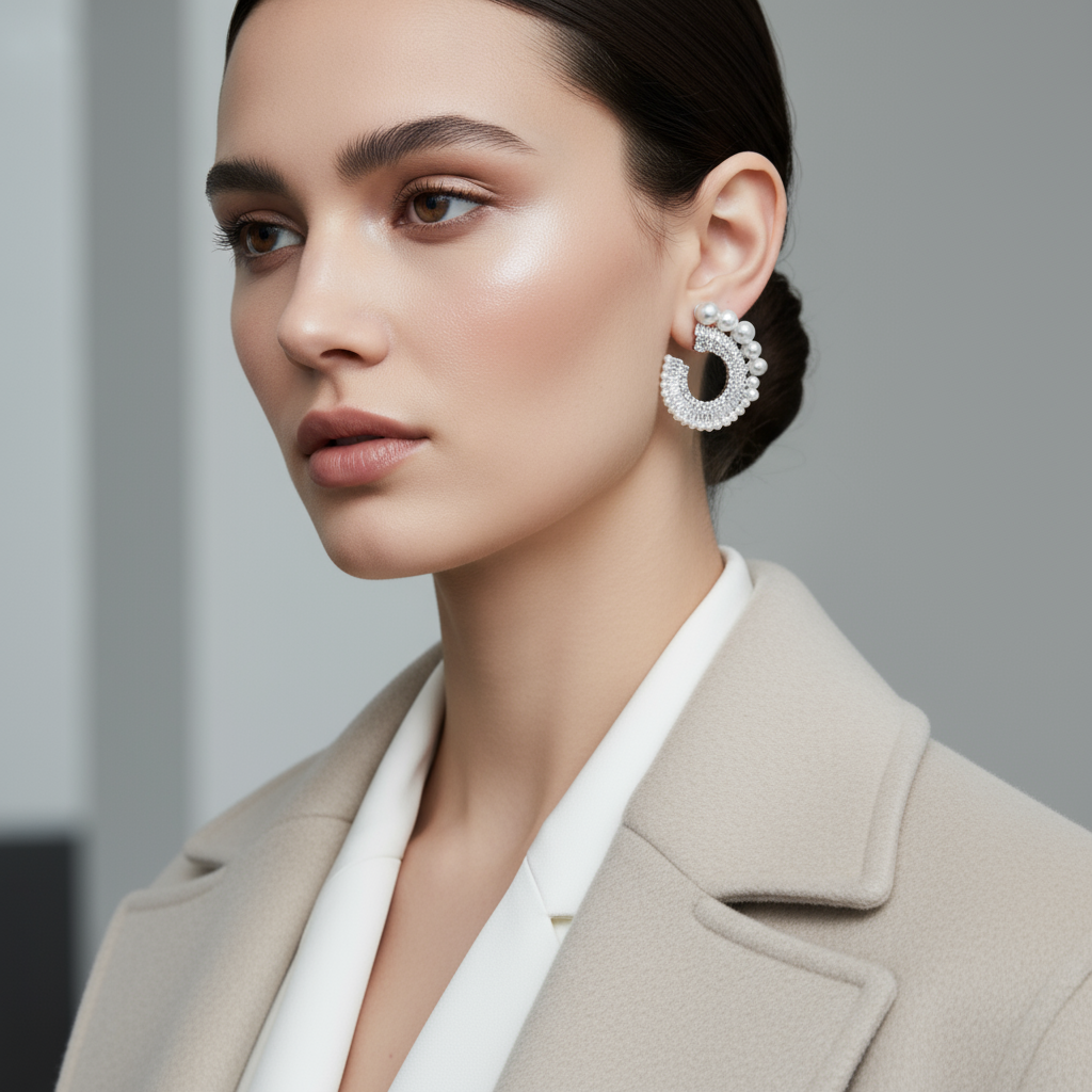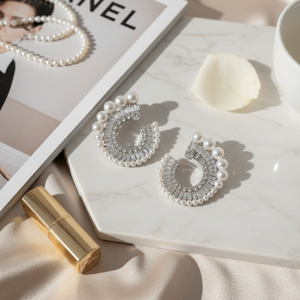 Οι πέρλες συναντούν το λαμπερό φινίρισμα των στρας σε ένα εντυπωσιακό C-σχήμα που αποπνέει glamour και θηλυκή αυτοπεποίθηση.