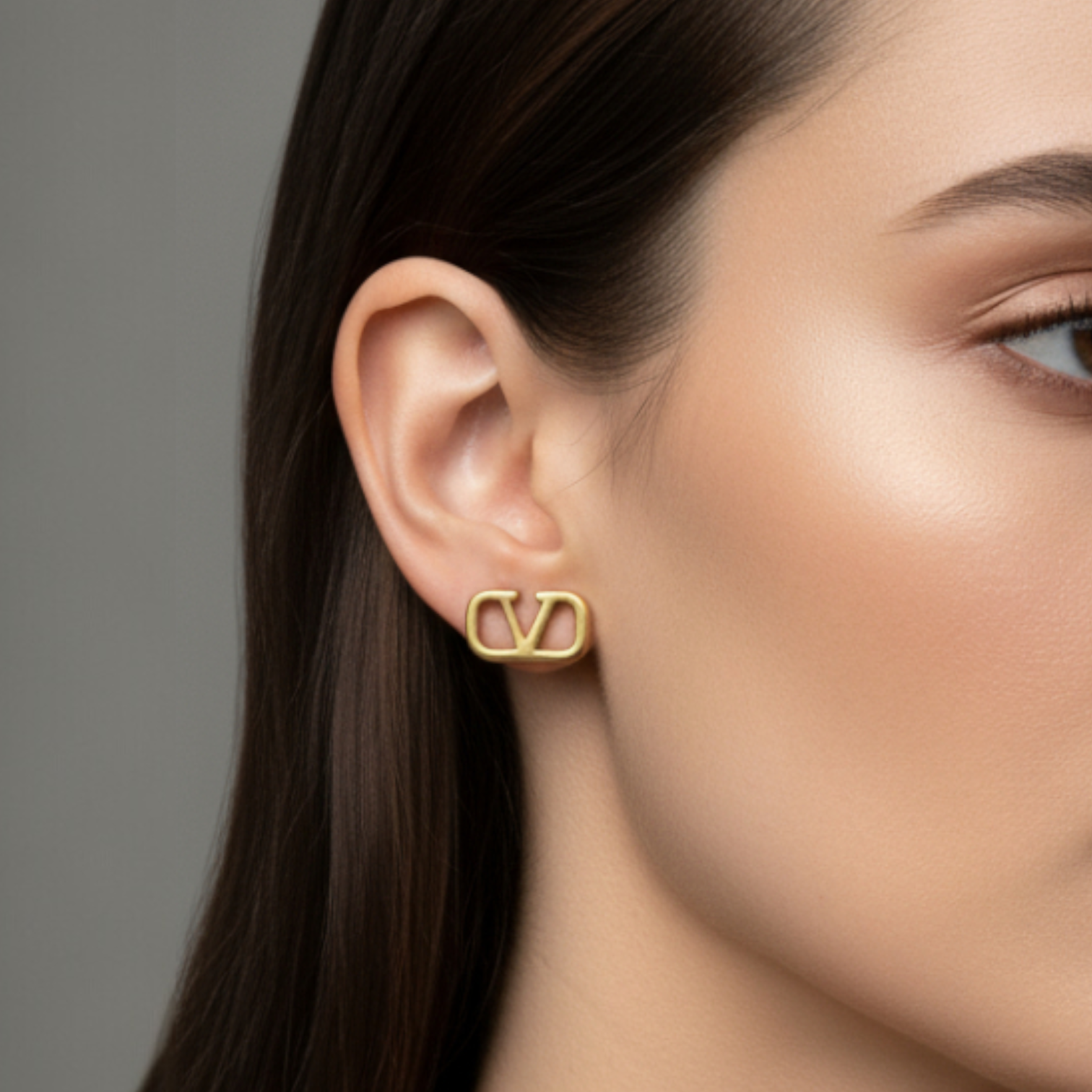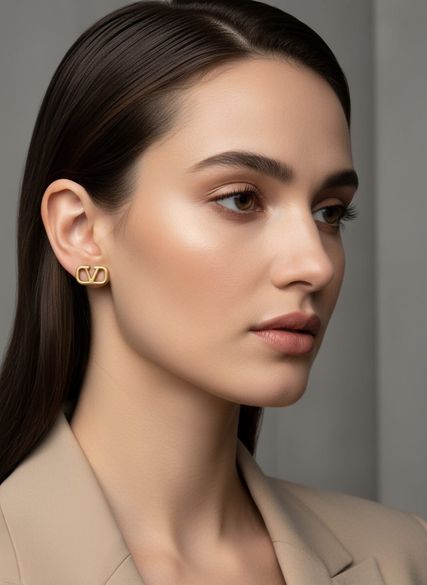V LOGO STUD EARRINGS