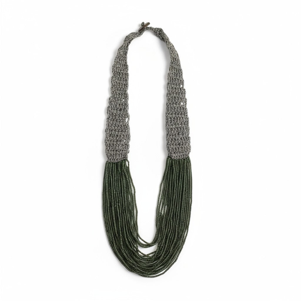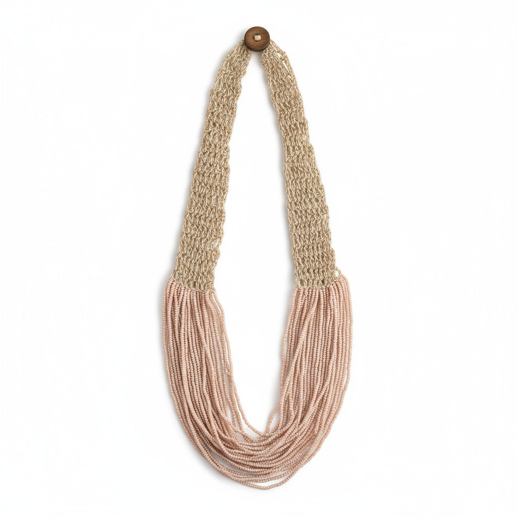 Φτιαγμένο από πολλές σειρές μικροσκοπικών χαντρών και χειροποίητο πλέξιμο στο πάνω μέρος, αυτό το μακρύ κολιέ χαρίζει κίνηση και υφή σε κάθε outfit.