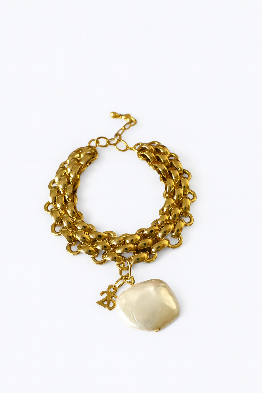 Βραχιόλι Γούρι με Ατσάλινη Αλυσίδα & Πέρλα – Motif 26