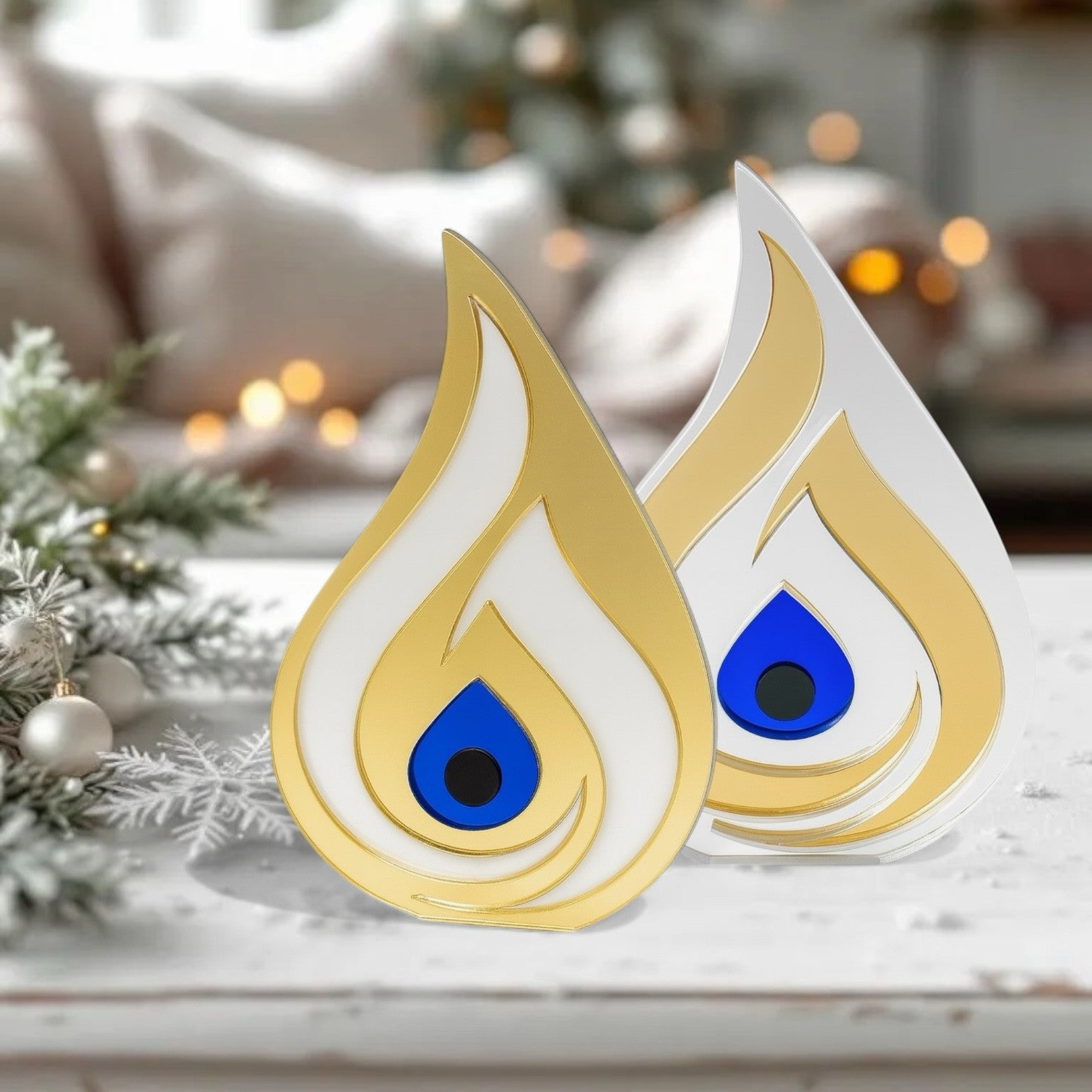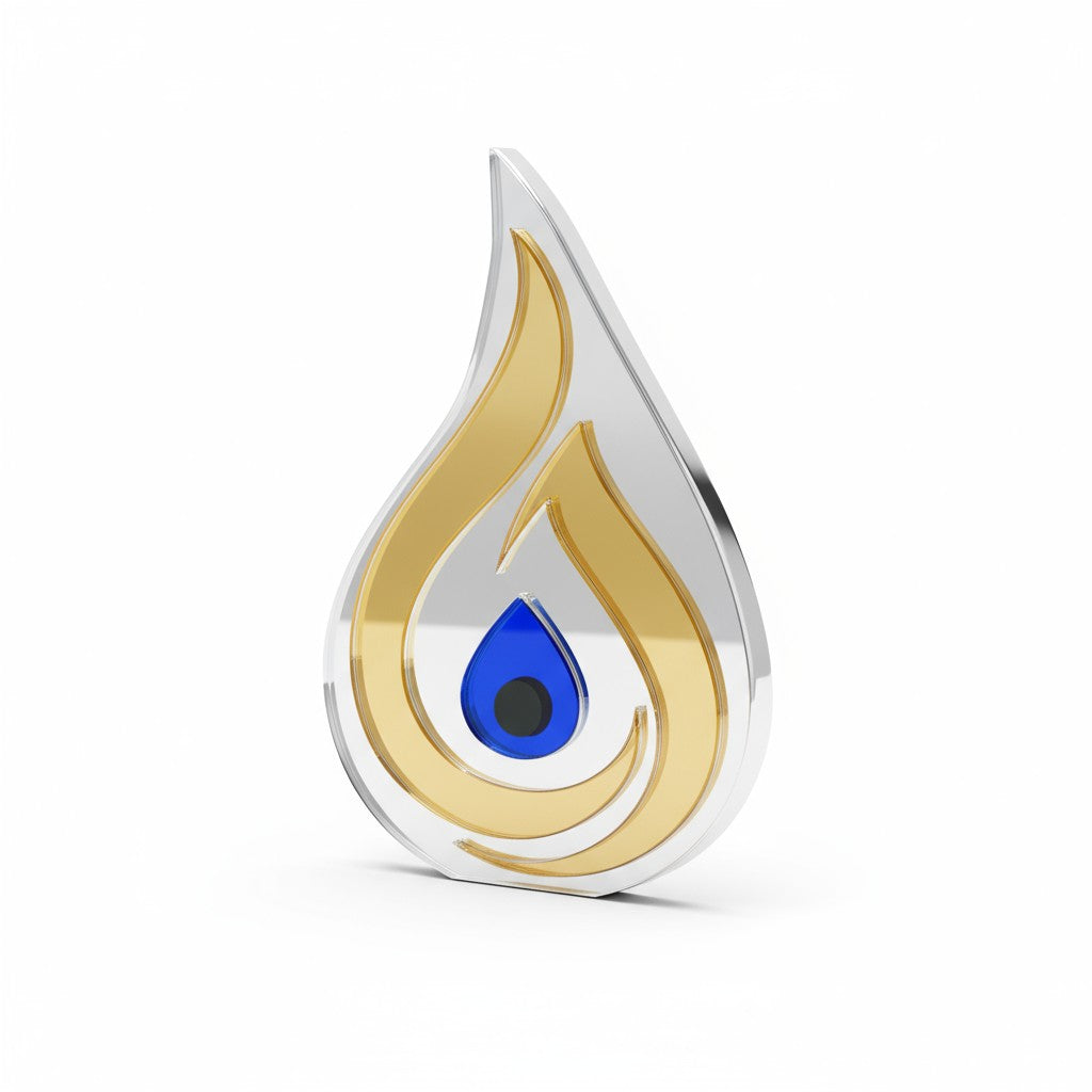 Κατασκευασμένο από πλεξιγκλάς καθρέφτη σε συνδυασμό χρυσού και ασημιού, με layered σχήμα φλόγας και συμβολικό μάτι στο κέντρο, προσθέτει έναν αέρα πολυτέλειας σε κάθε χώρο.