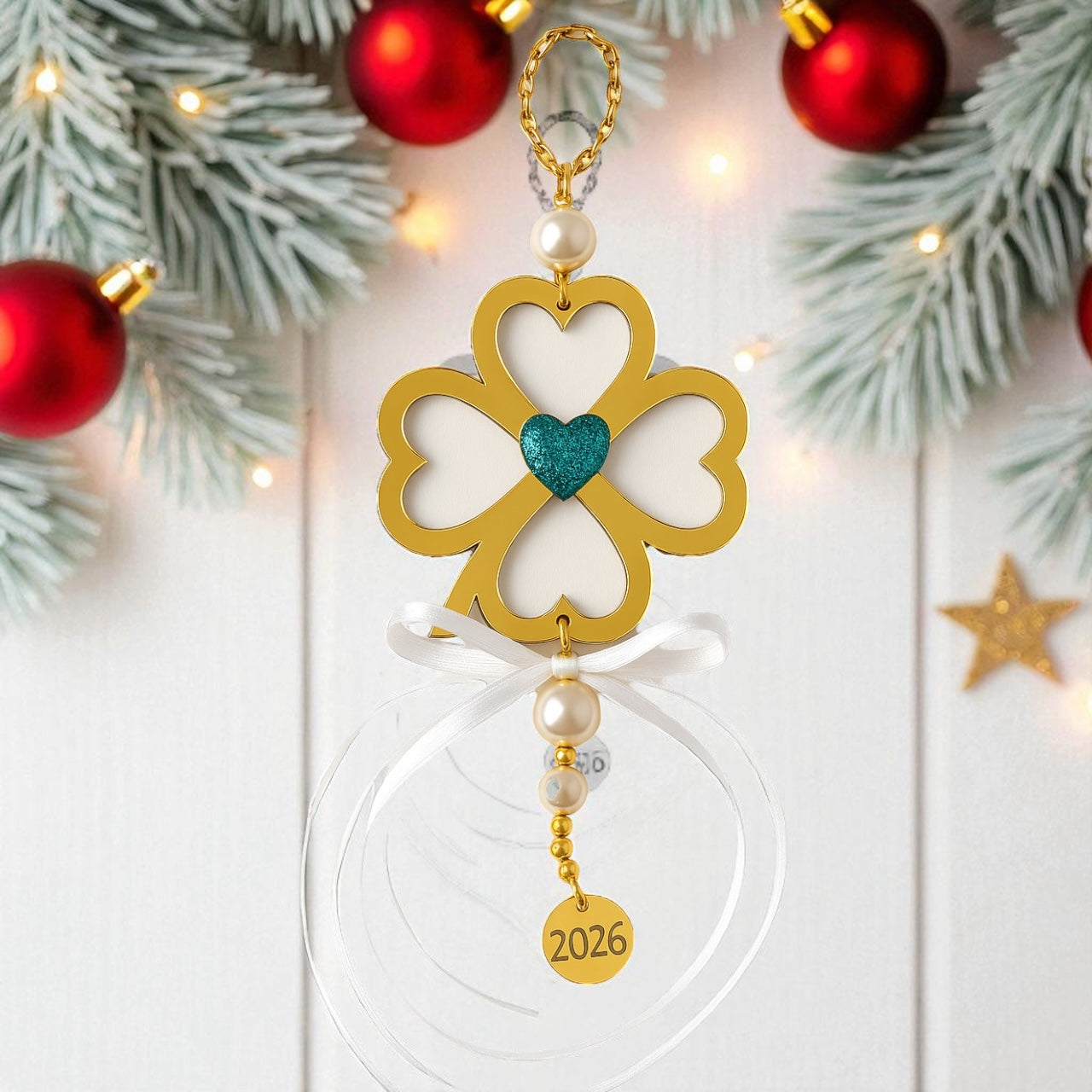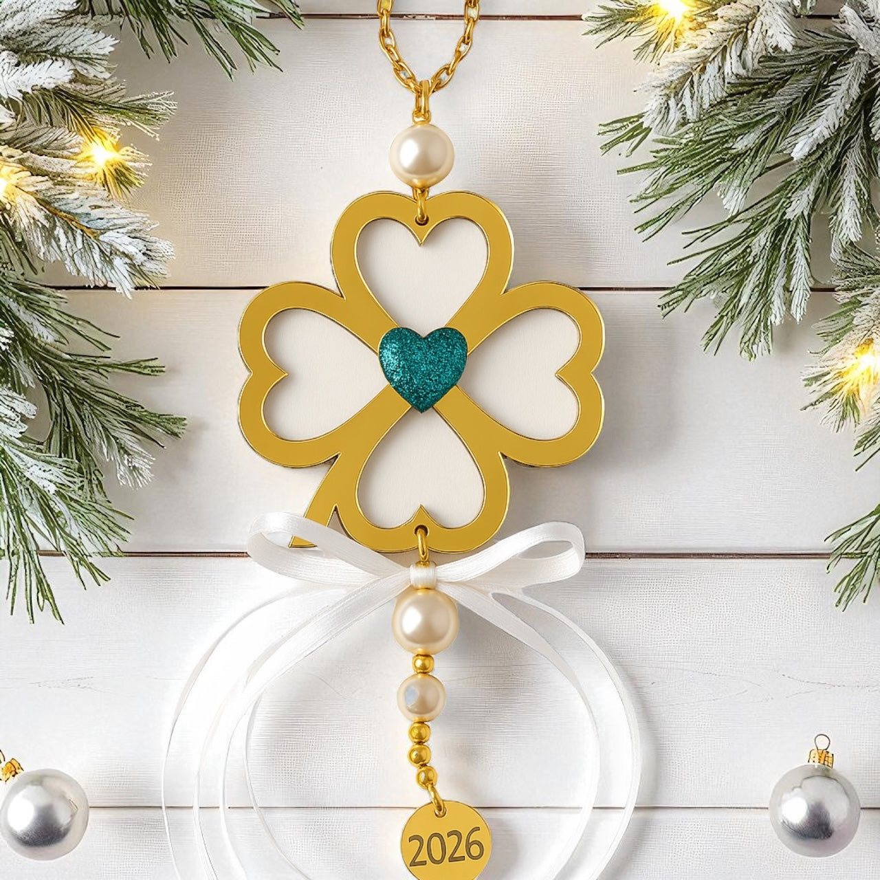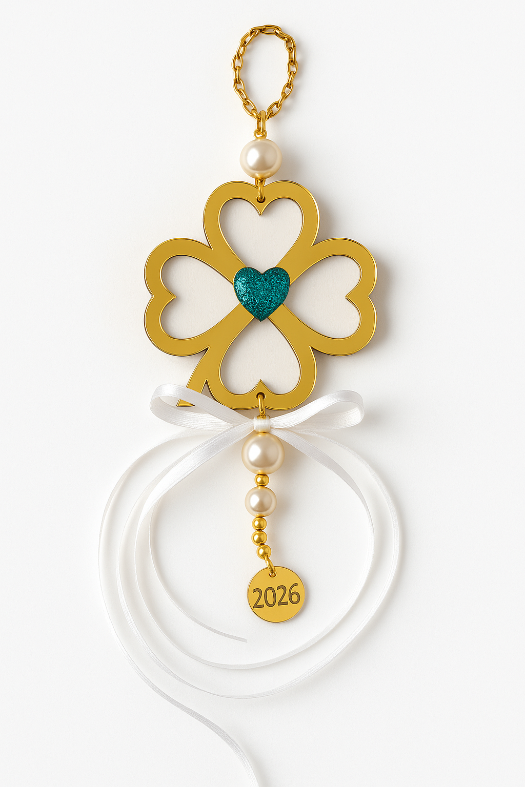 Γούρι Τετράφυλλο Τριφύλλι με Καρδιά & Πέρλες – Συλλογή Greek Wishes