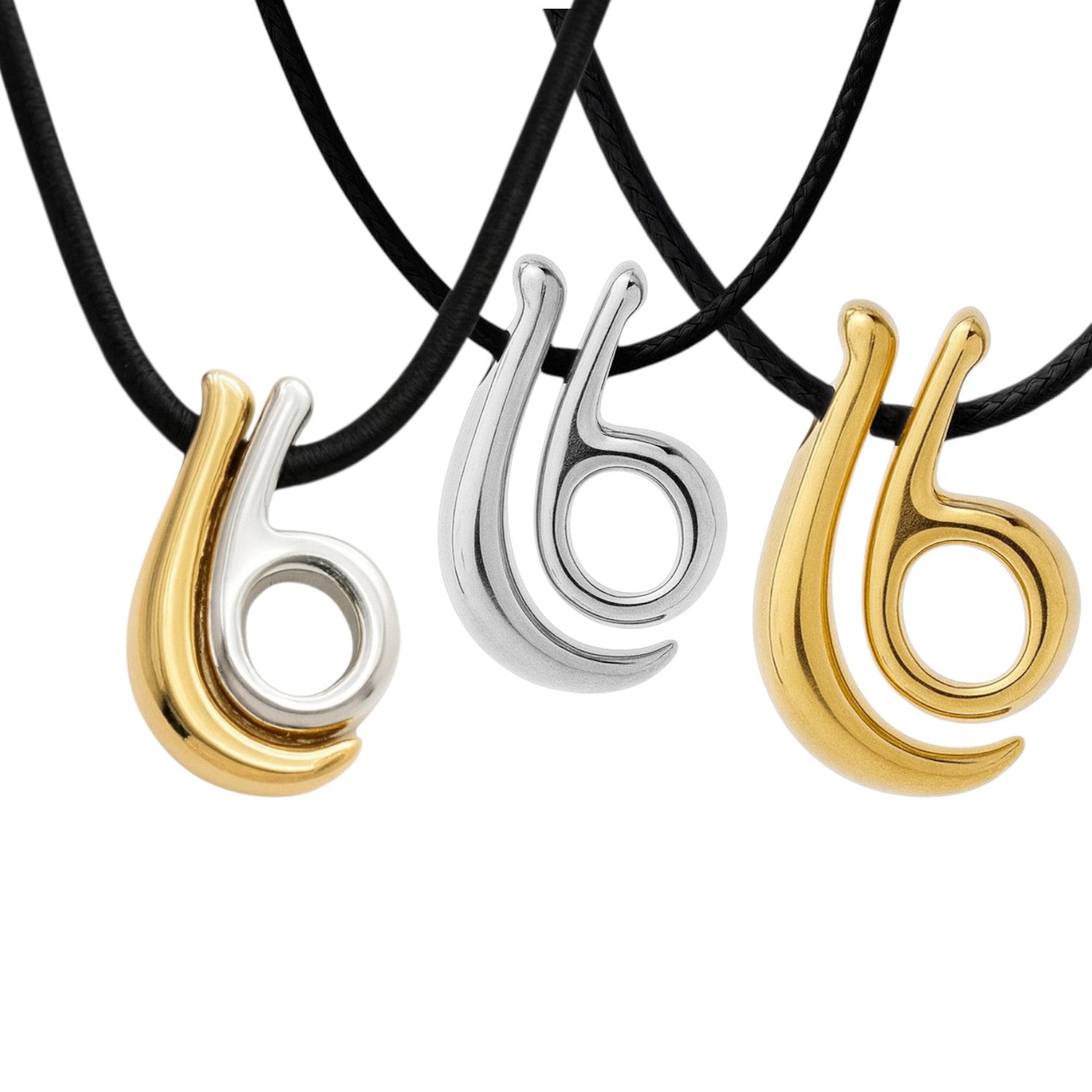 Χειροποίητο γούρι-κολιέ με διπλό μοτίφ 26 σε καμπυλωτό design που συμβολίζει τη νέα χρονιά. Το κρεμαστό συνδυάζει μοντέρνα αισθητική με διαχρονικότητα, ενώ το μαύρο κορδόνι (μήκος 80 εκ., αυξομειούμενο) προσφέρει άνετη εφαρμογή για κάθε στυλ.