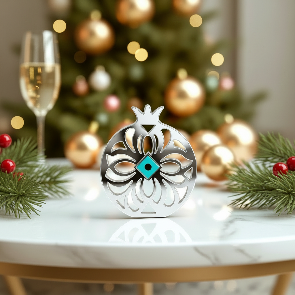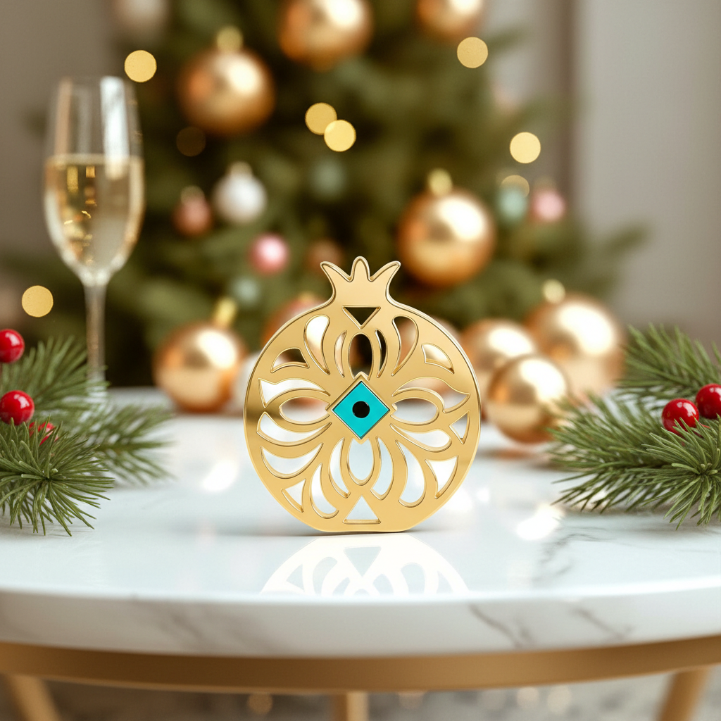 Το γούρι Ρόδι με μάτι συνδυάζει τον συμβολισμό της αφθονίας και της προστασίας σε ένα πολυτελές διακοσμητικό.