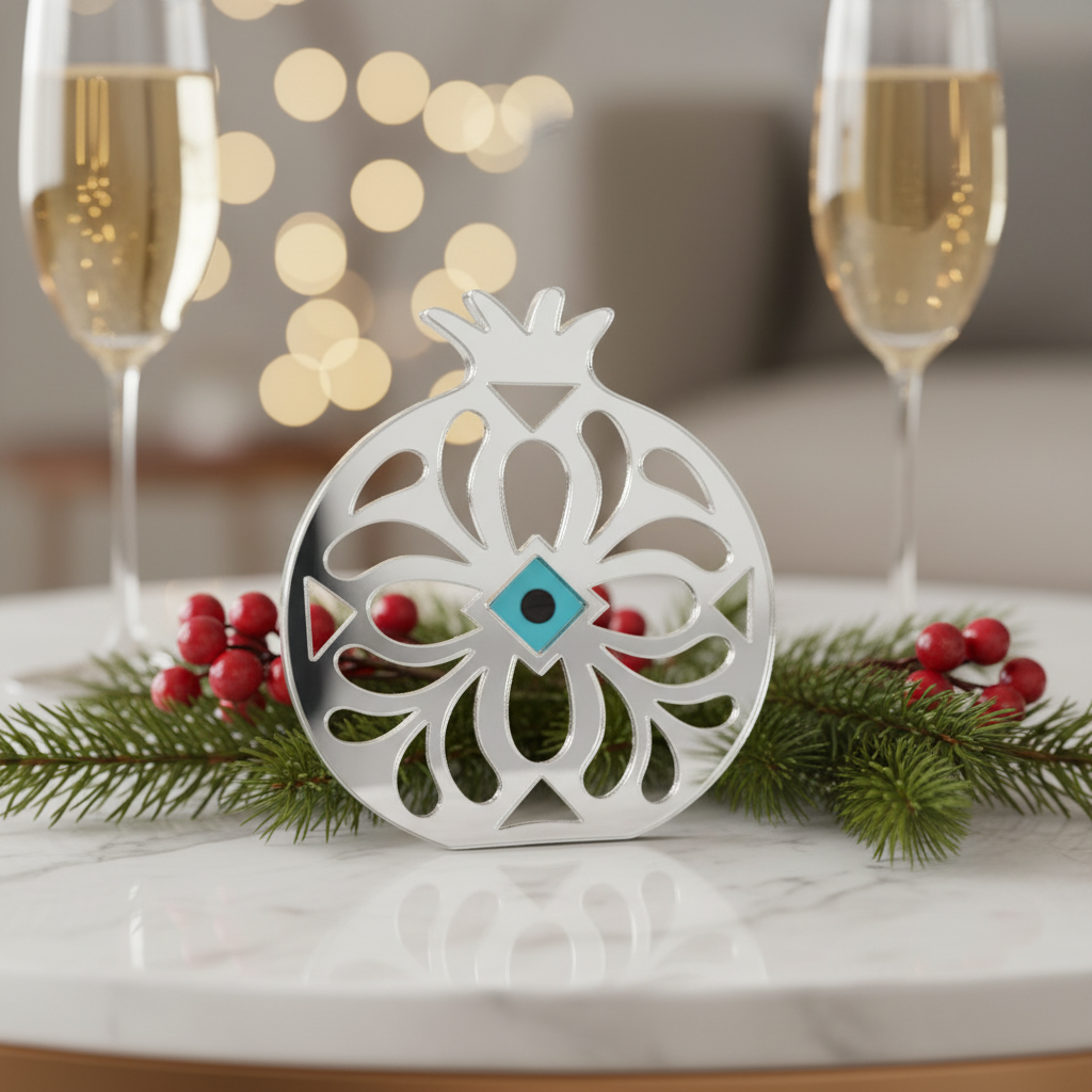 Το ρόδι αποτελεί παραδοσιακό σύμβολο καλοτυχίας και ευημερίας, ενώ το μάτι προσθέτει μια επιπλέον αίσθηση προστασίας. Ένα διαχρονικό γούρι που ταιριάζει σε κάθε σπίτι ή γραφείο.
