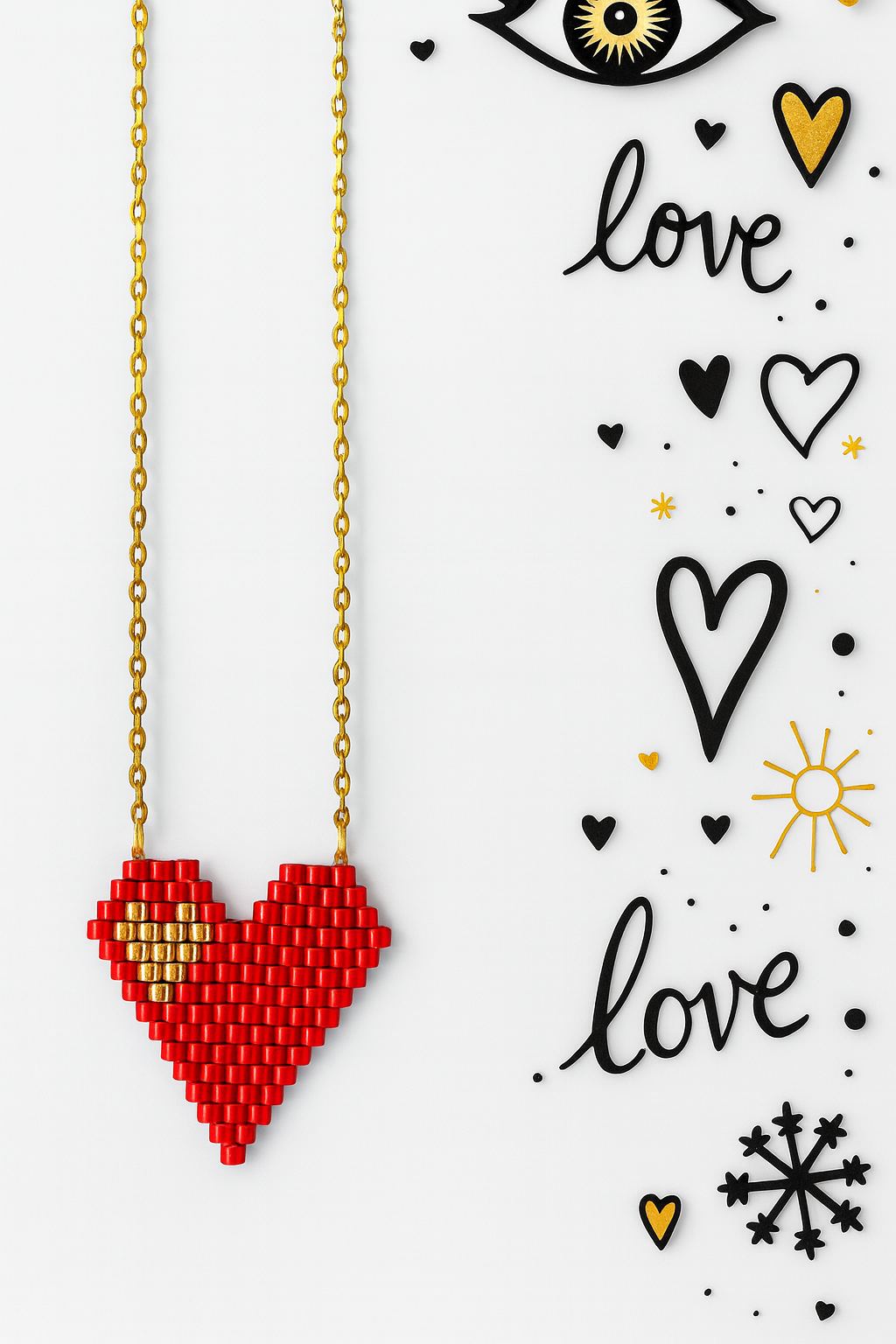 Το Heart είναι ένα κολιέ που αποπνέει κομψότητα και δυναμισμό. Η καρδιά από χάντρες Miyuki με χρυσή λεπτομέρεια στο κέντρο δημιουργεί ένα statement μοτίφ που συνδυάζει girly αισθητική με minimal-luxury χαρακτήρα. Ιδανικό για να ολοκληρώσει κάθε look, από το καθημερινό ως το πιο βραδινό.