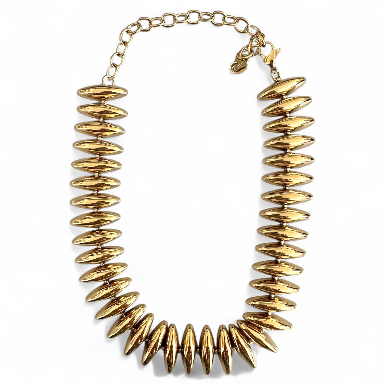 ✨ Choker Steel Shine – Ατσάλινο Τσόκερ με Χρυσές Οβάλ Χάντρες