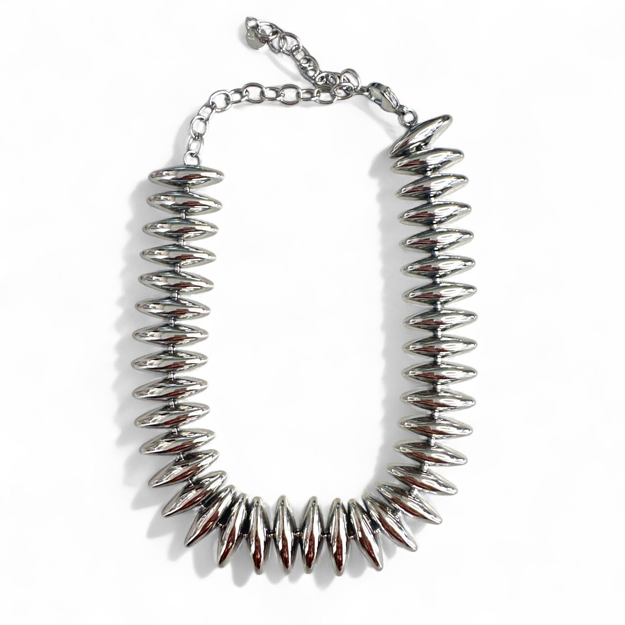 Αν θες να δώσεις statement λάμψη στις εμφανίσεις σου, το Choker Steel Shine είναι το ιδανικό κόσμημα. Ένα εντυπωσιακό ατσάλινο τσόκερ με χρυσές οβάλ χάντρες που αγκαλιάζουν τον λαιμό με δυναμικό αλλά ταυτόχρονα κομψό χαρακτήρα.