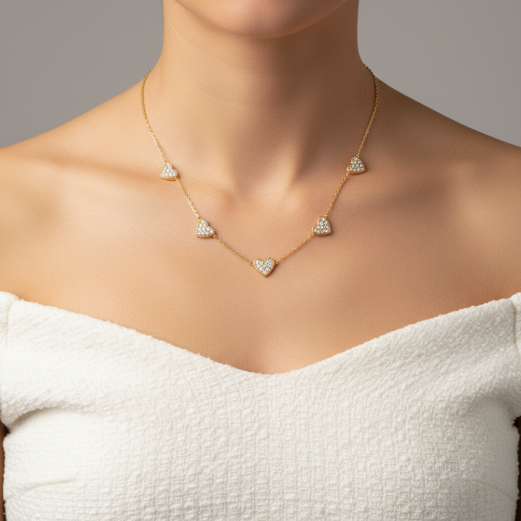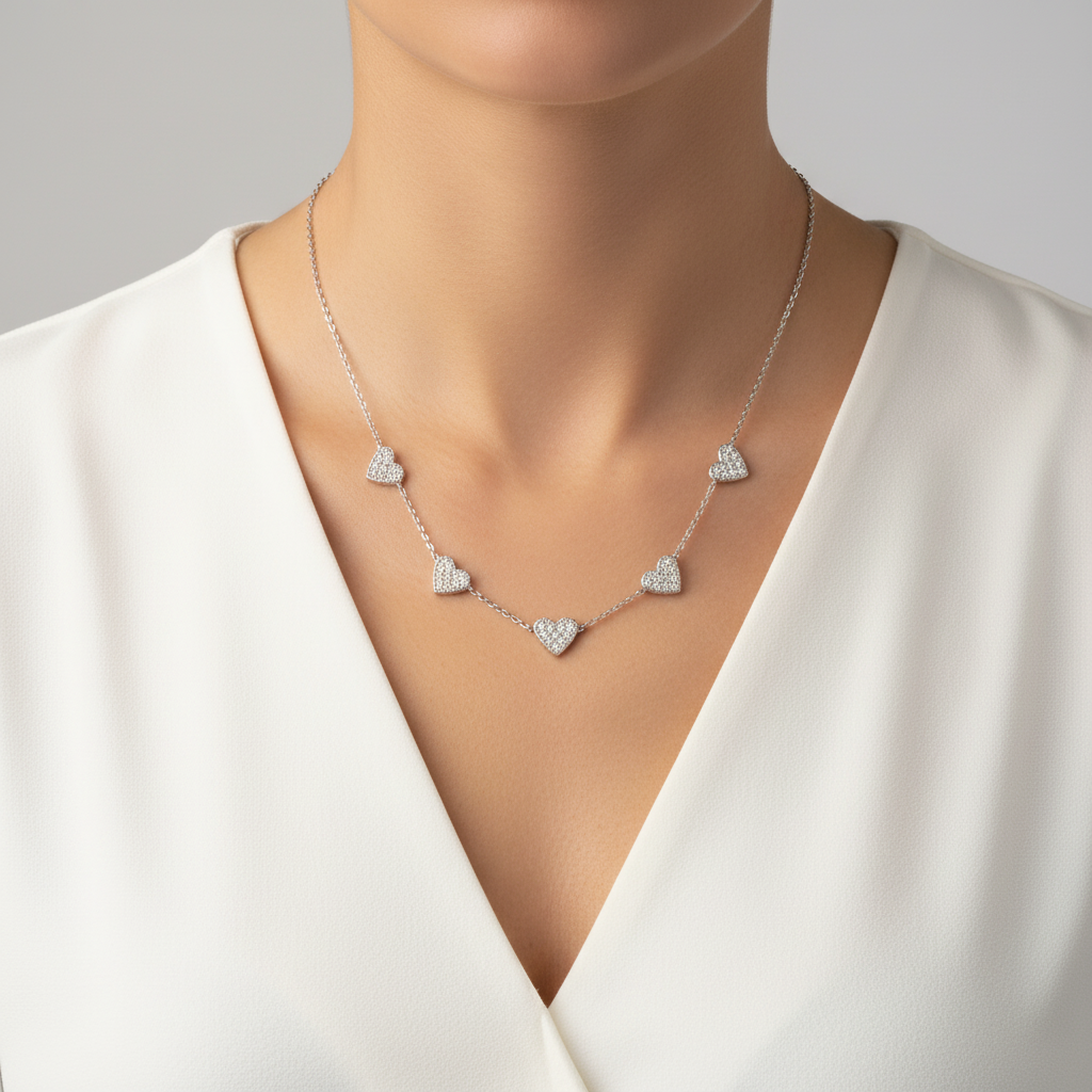 Crystal Hearts – Κολιέ με Καρδιές Ζιργκόν | Ατσάλι