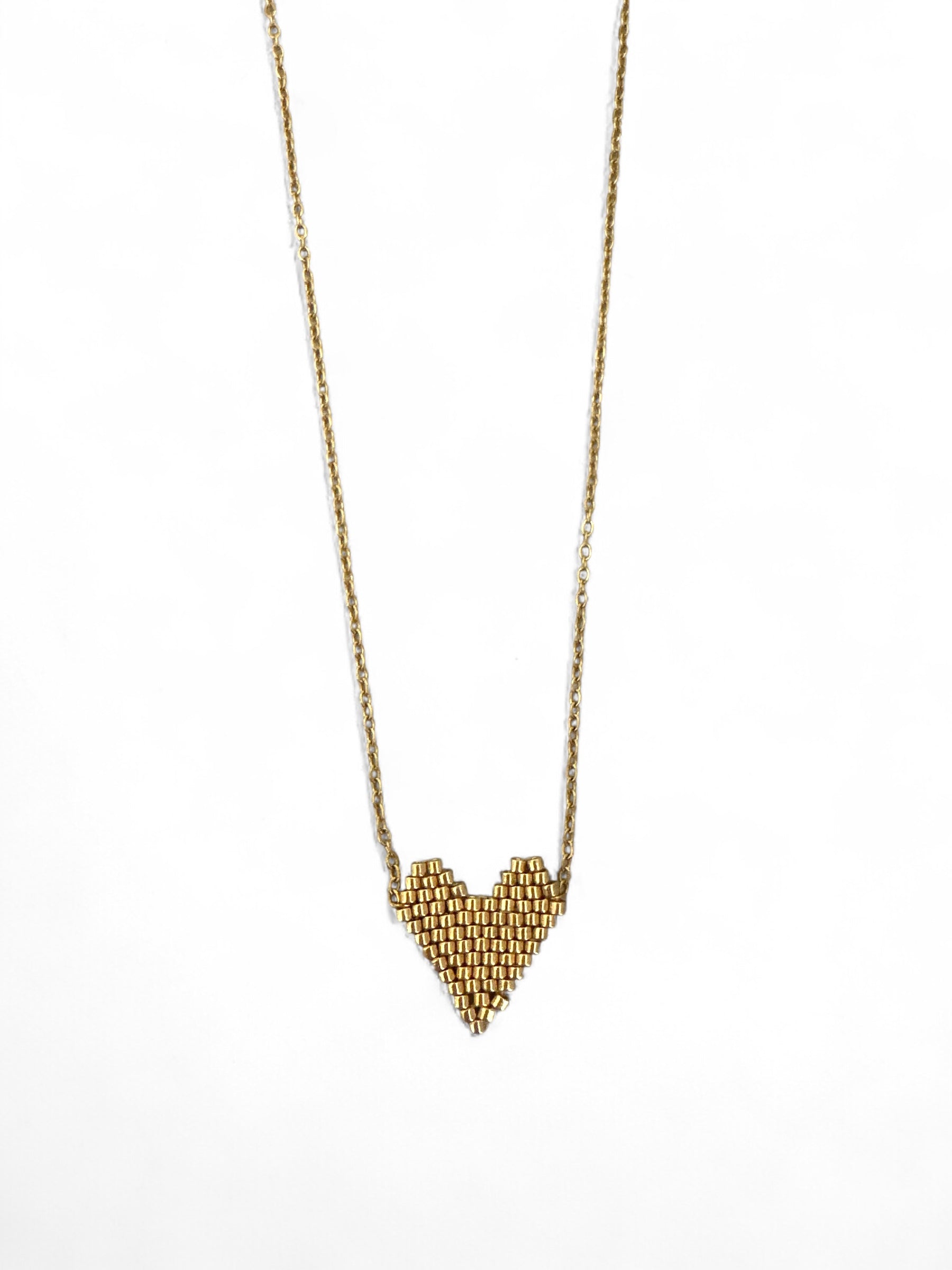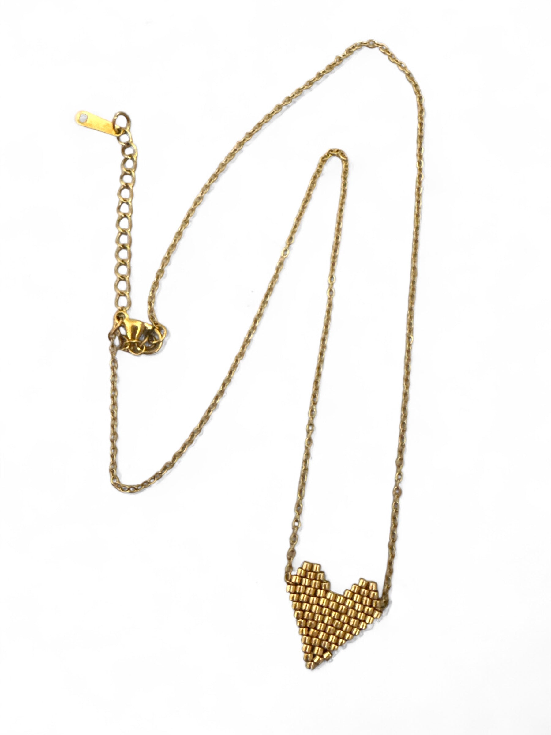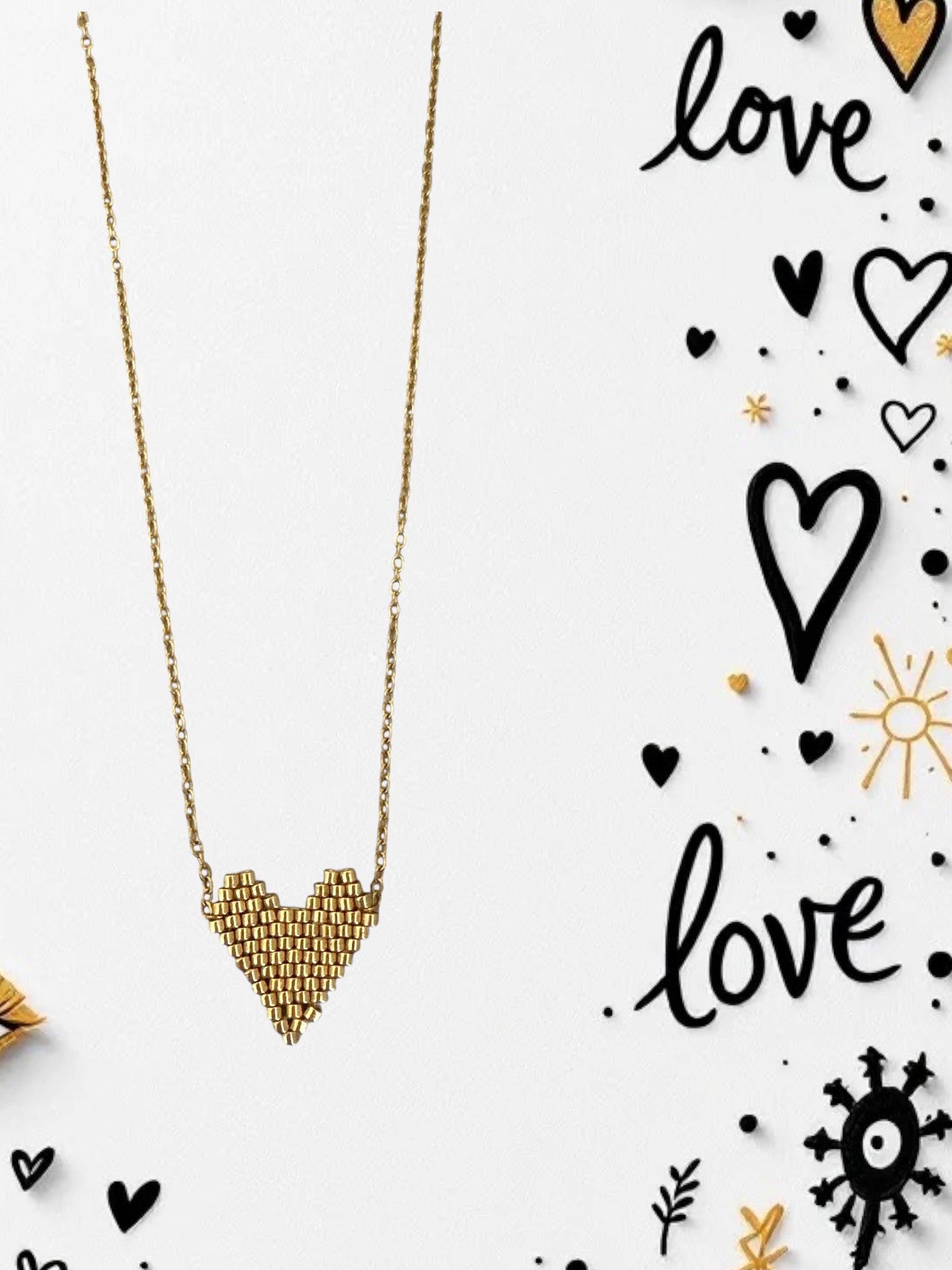 Το Golden Heart είναι το κολιέ που αποτυπώνει την αγάπη σε πιο minimal-luxury εκδοχή. Η καρδιά, φτιαγμένη εξ ολοκλήρου από χρυσές χάντρες Miyuki, δίνει διακριτική λάμψη και κομψότητα, κρεμασμένη σε λεπτή ατσάλινη αλυσίδα. Ένα κόσμημα που μπορείς να φοράς καθημερινά, αλλά και να το χαρίζεις ως δώρο αγάπης που ταιριάζει σε κάθε στυλ.