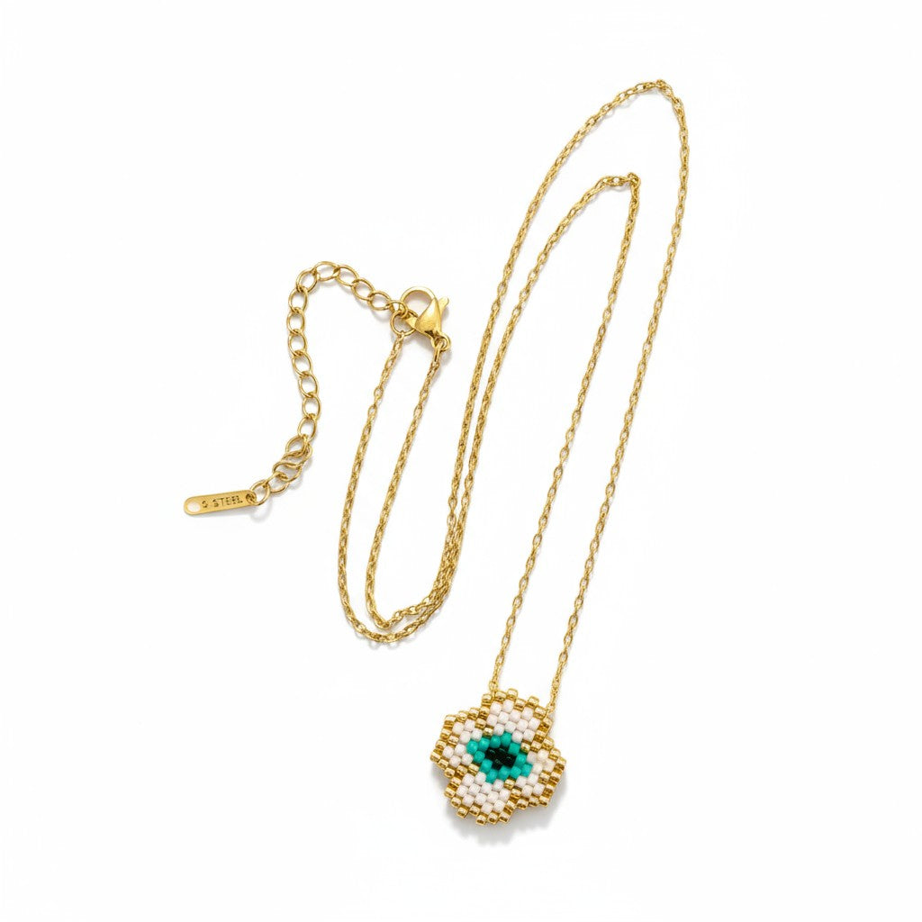 Lucky Clover Eye – Κολιέ με Τριφύλλι & Μάτι Miyuki | Ατσάλι