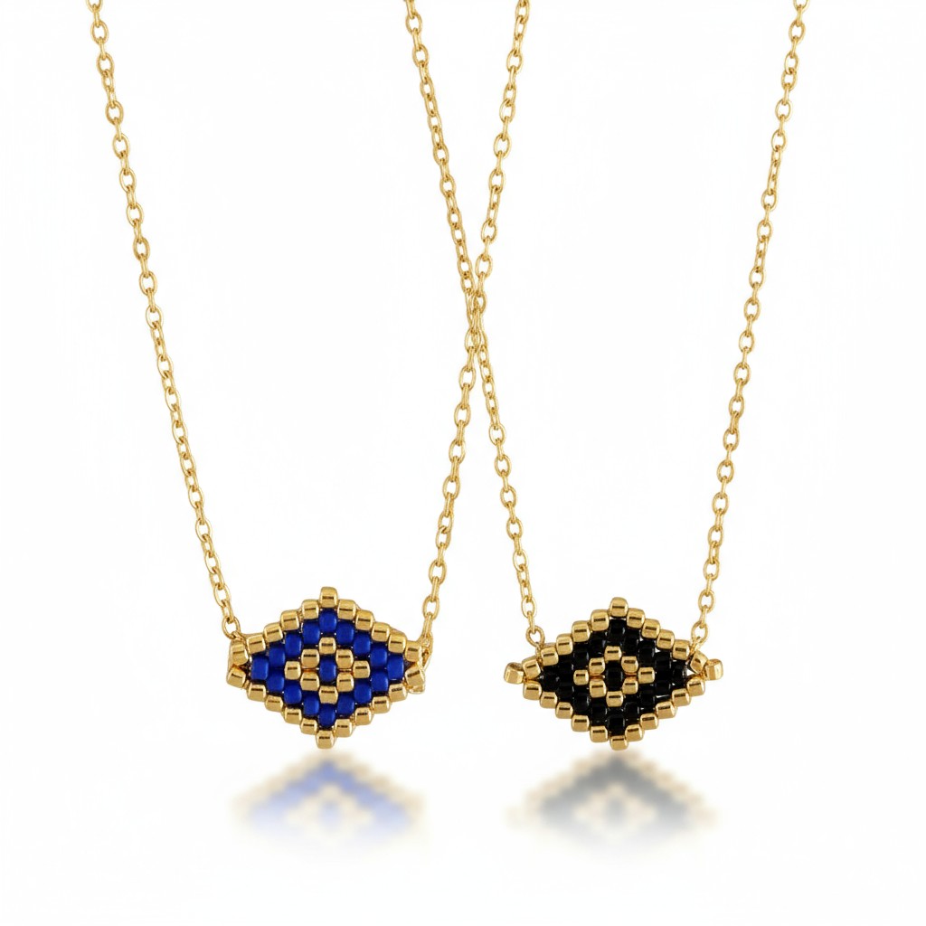 Mystic Mini – Ατσάλινο Κολιέ με Χάντρες Miyuki & Σχέδιο Μάτι