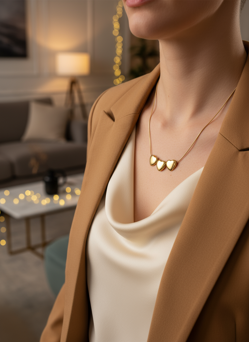 Κολιέ με 3 καρδούλες, από ανοξείδωτο ατσάλι! Ταιριάζει με τα πάντα και είναι κατάλληλο για κάθε περίσταση. Φορέστε το άφοβα και στο νερό αφού δεν μαυρίζει.