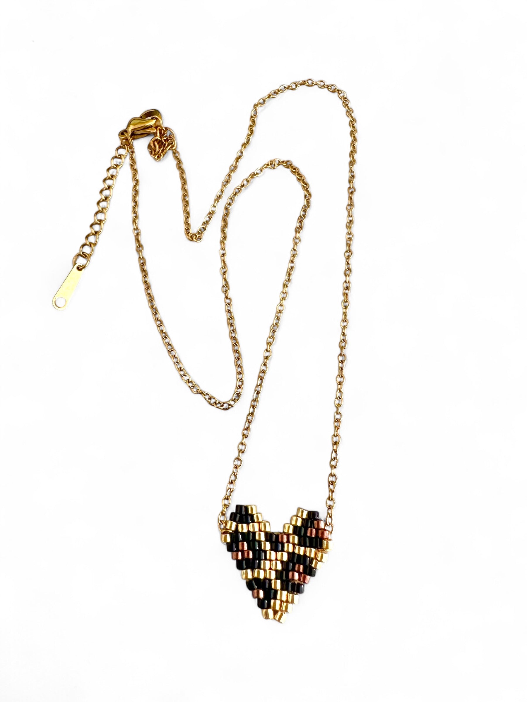 Wild Heart – Κολιέ Miyuki Καρδιά Animal Print | Ατσάλι