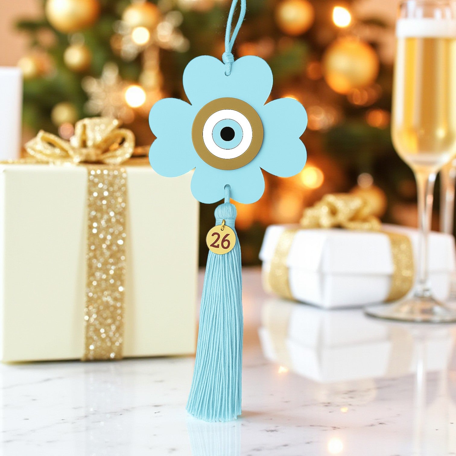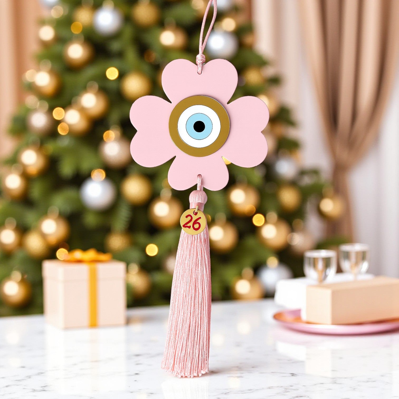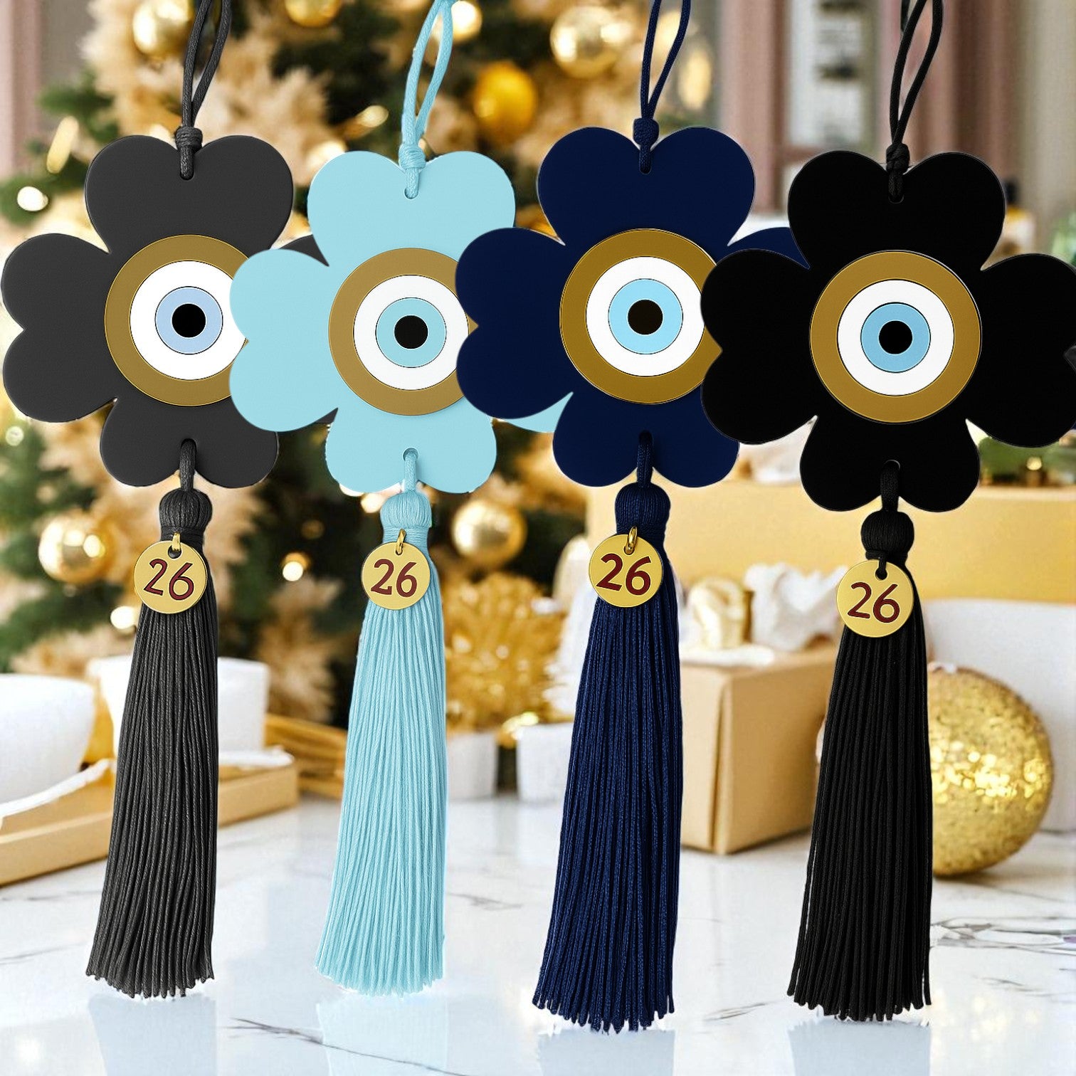 Γούρι 2026 Τετράφυλλο με Μάτι & Φούντα | Χειροποίητο Κρεμαστό Plexiglass
