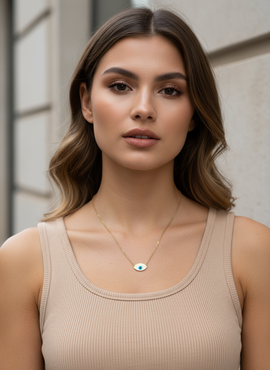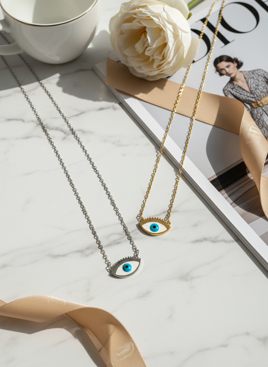 Lucky Lash – Ατσάλινο Κολιέ Μάτι με Βλεφαρίδες