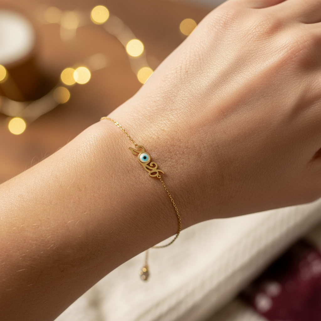 Ατσάλινο Βραχιόλι Γούρι 2026 με Μάτι ✨