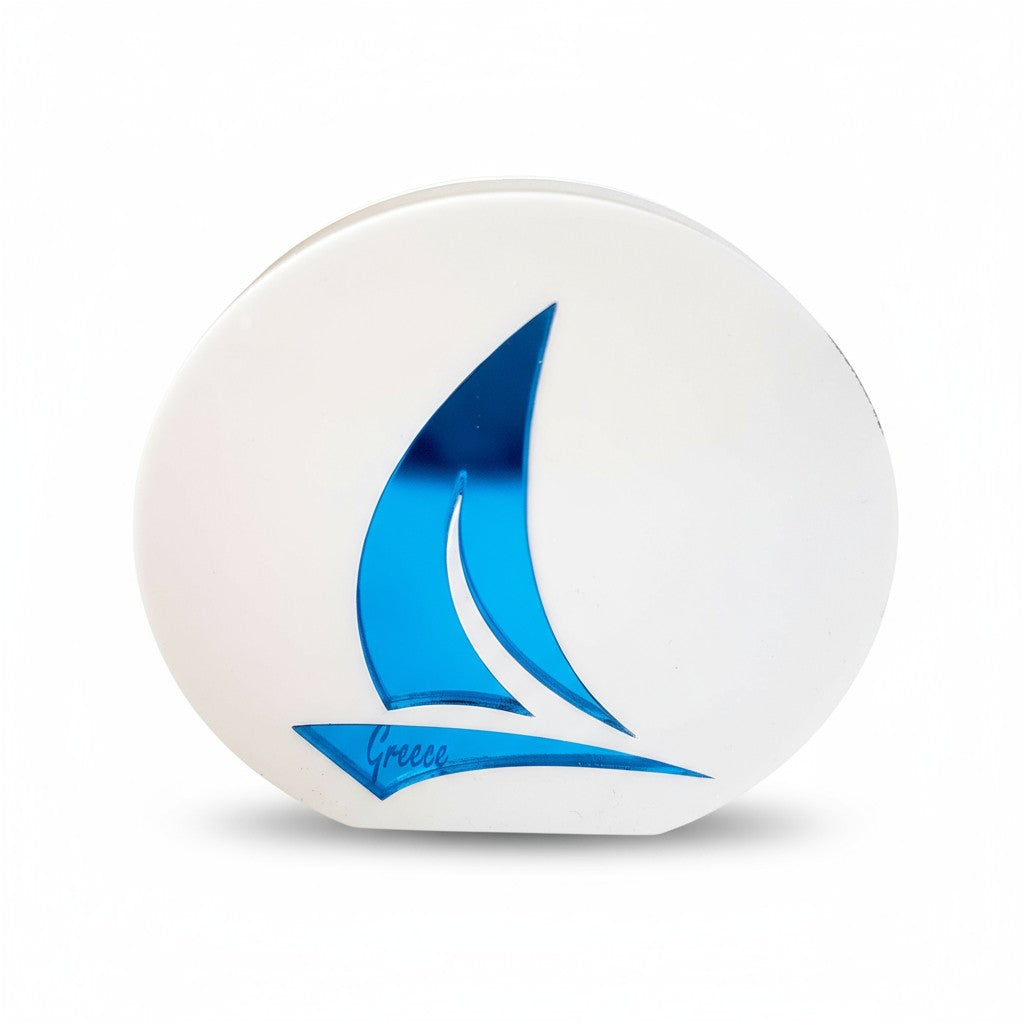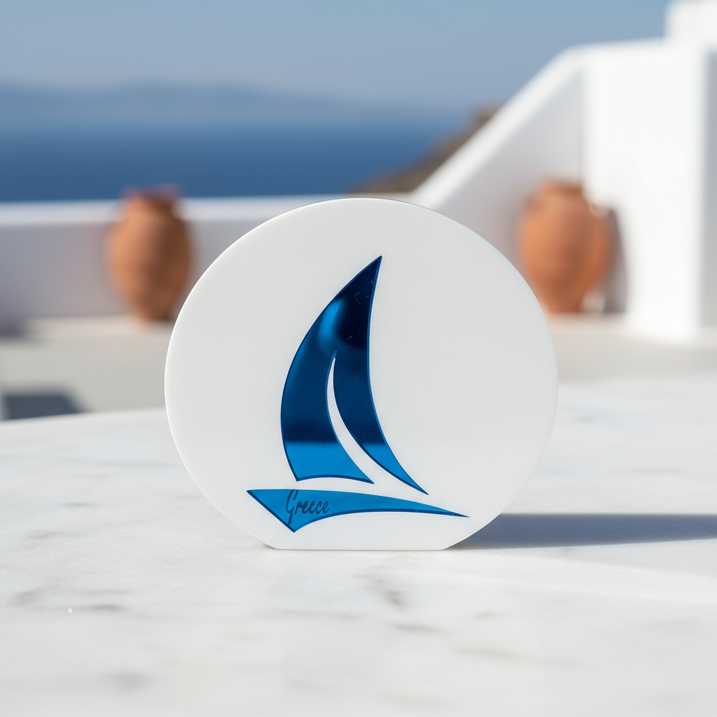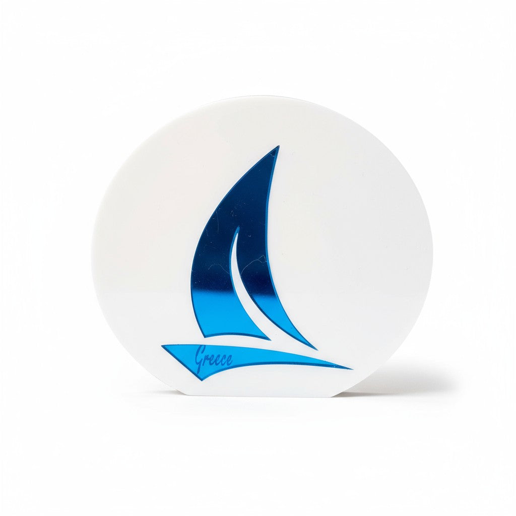 Γούρι Ιστιοφόρο – Plexiglass Καθρέφτης με Λέξη “Greece”