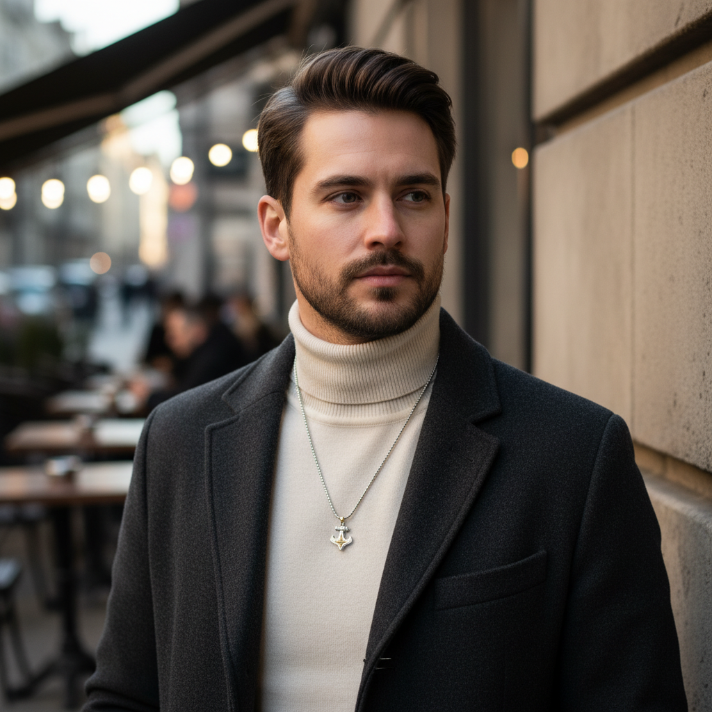Minimal, διακριτικό και παράλληλα στιβαρό, χαρίζει ανδρική αυτοπεποίθηση και λειτουργεί τέλεια σε κάθε outfit — από casual λευκό t-shirt μέχρι μάλλινο πουλόβερ.