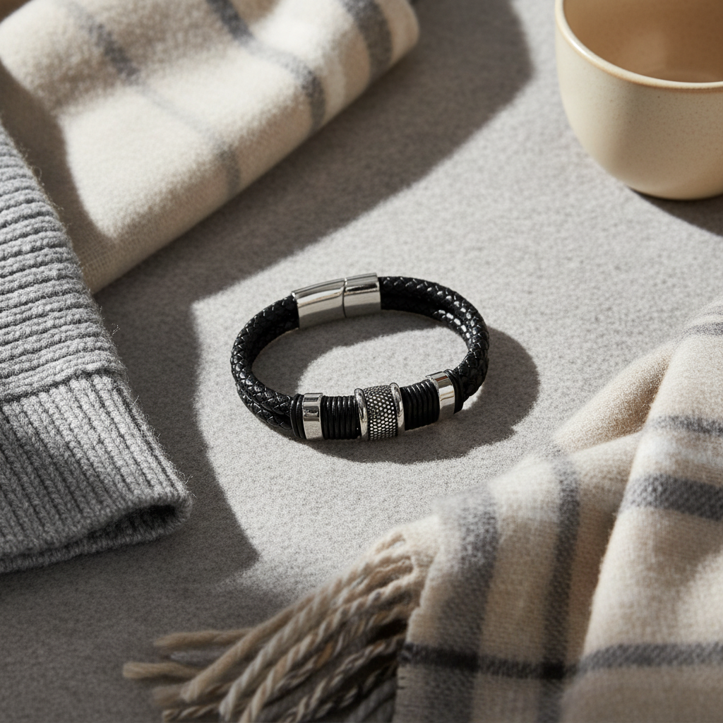 Andro – Ανδρικό Βραχιόλι Δερματίνη με Μεταλλική Λεπτομέρεια