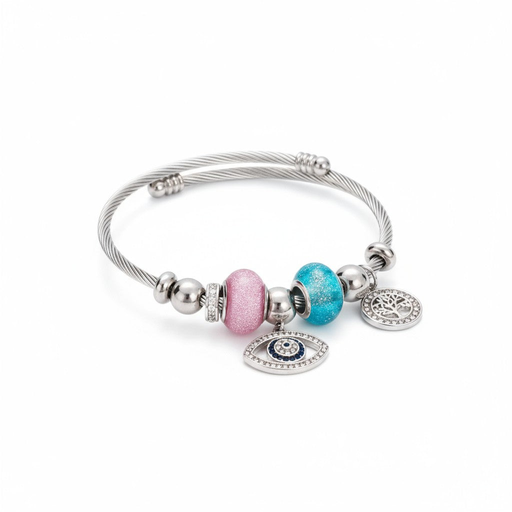 Ατσάλινο Βραχιόλι Tree of Life & Eye με Ροζ & Γαλάζιες Χάντρες