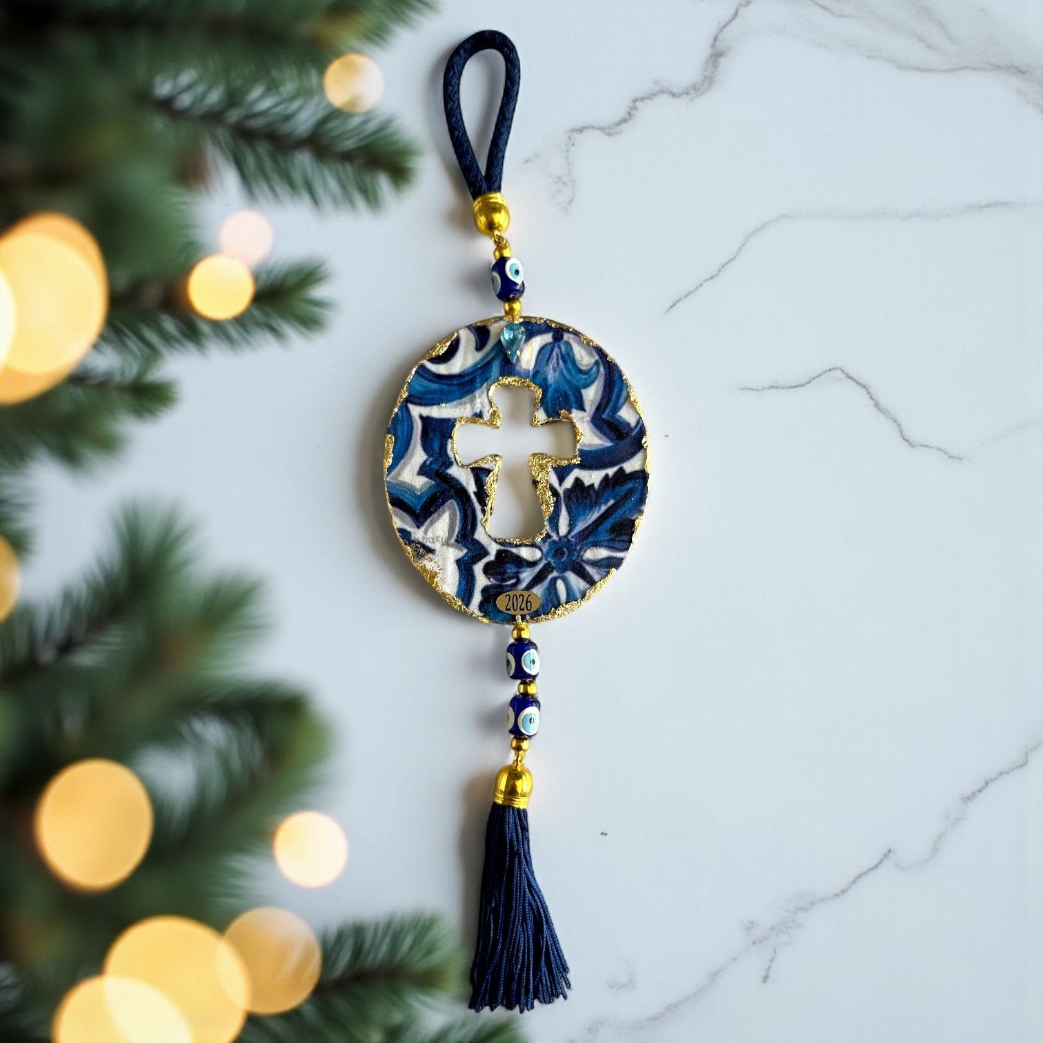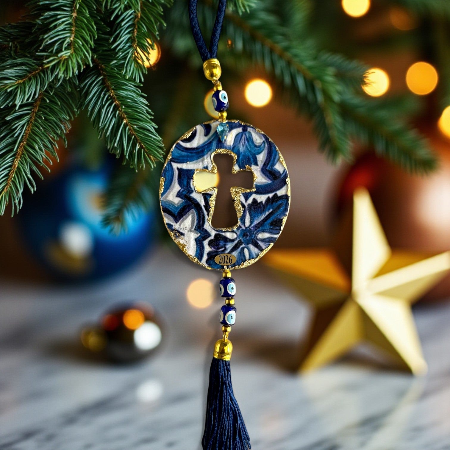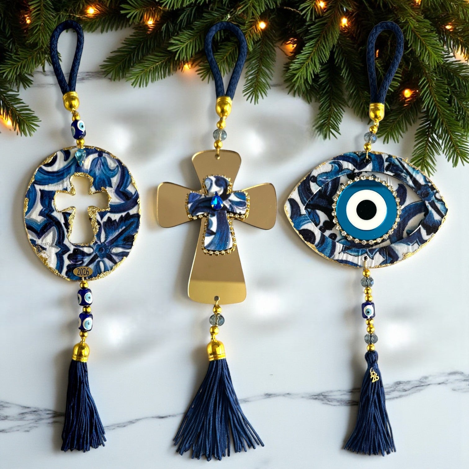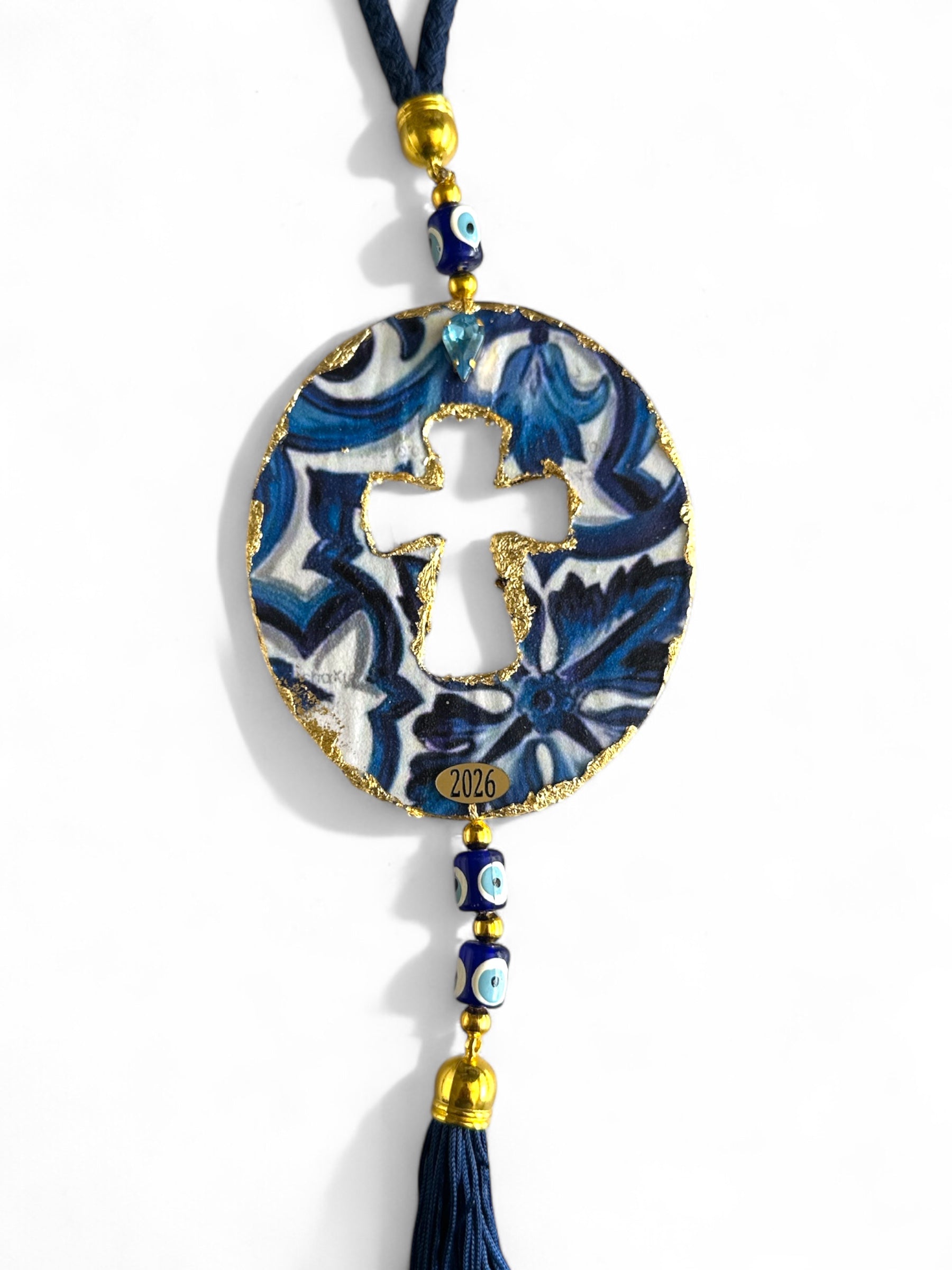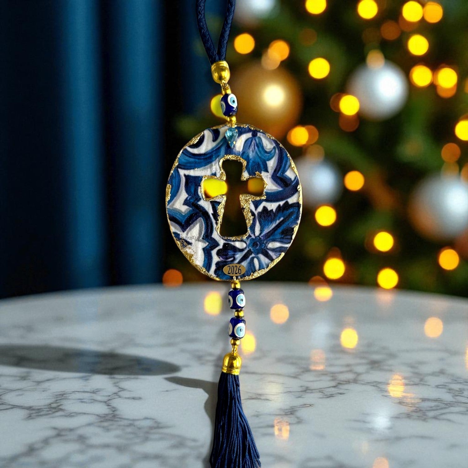 Γούρι 2026 – Οβάλ Σταυρός με Μάτια & Φούντα | Συλλογή Greek Wishes