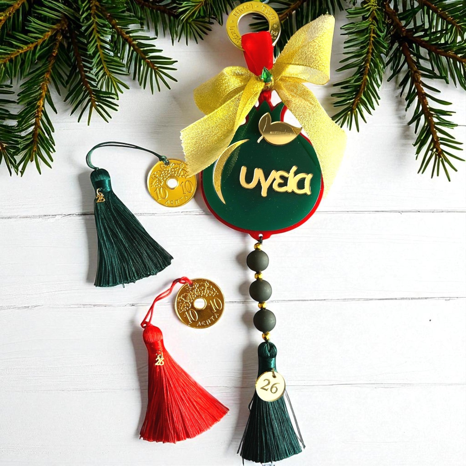 Γούρι 2026 Κρεμαστό Ρόδι Plexiglass με Επιγραφή Υγεία & Πολυτελή Στολισμό