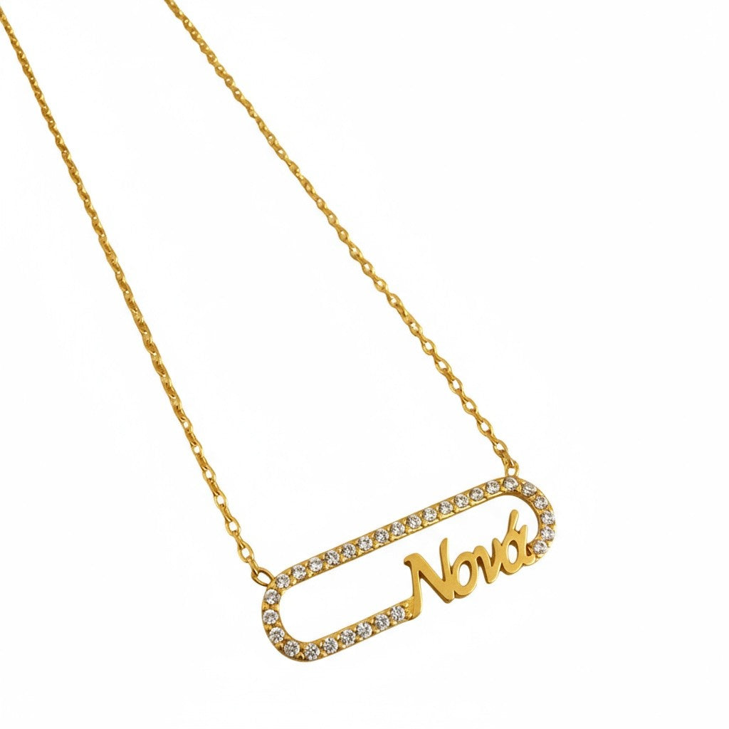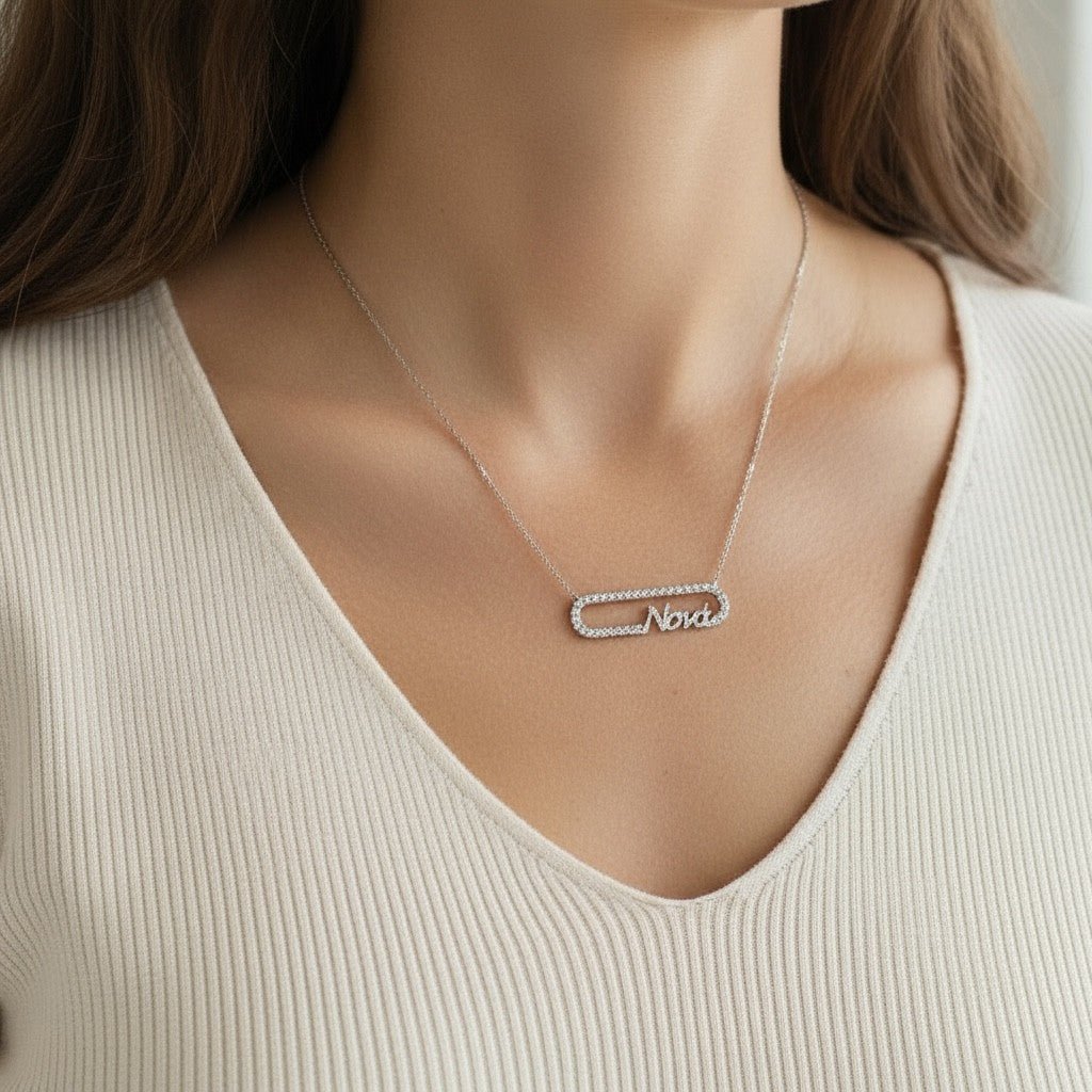 Το Nona Spark Necklace συνδυάζει το συναίσθημα με τη λάμψη — κομψό σχέδιο με μοτίφ “Νονά” και διακριτικά ζιργκόν περιμετρικά.