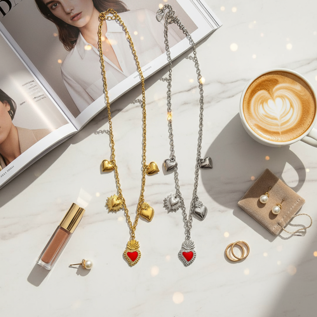 ⚡🚚 Κολιέ “Sacred Love” με Κρεμαστά Μοτίφ Καρδιάς