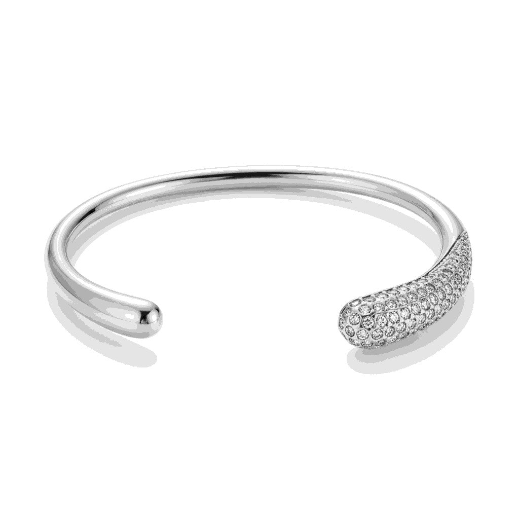Το “Glow Curve” είναι ένα minimal chic βραχιόλι από ατσάλι, με λαμπερές λεπτομέρειες ζιργκόν στο ένα άκρο και λεία, γυαλιστερή καμπύλη στο άλλο.