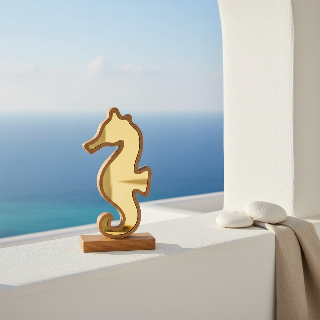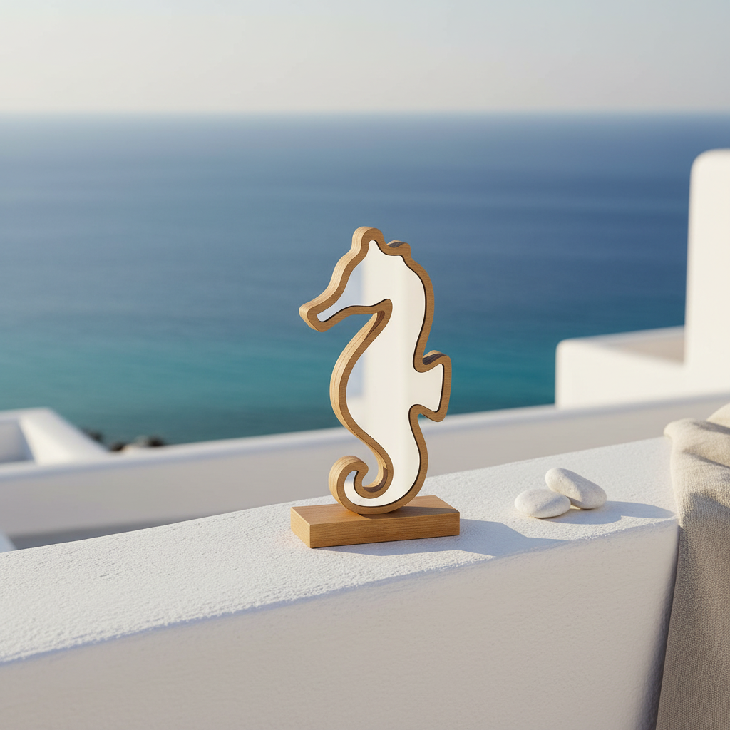 Η elegant σιλουέτα του ιππόκαμπου αποδίδεται με minimal coastal γραμμή, δημιουργώντας ένα premium, φωτεινό διακοσμητικό που ταιριάζει ιδανικά σε καθιστικό, εξοχική κατοικία, παιδικό δωμάτιο ή boho resort decor.