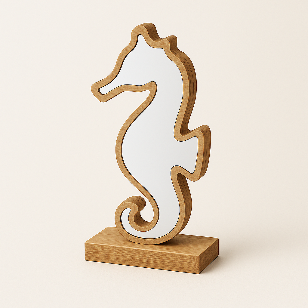 Ο Επιτραπέζιος Ιππόκαμπος Mirror της So Cute by Dimi συνδυάζει τη φυσική ομορφιά του ξύλου σημύδας με τη λάμψη του καθρέφτη, σε δύο εκδοχές: gold mirror ή silver mirror.