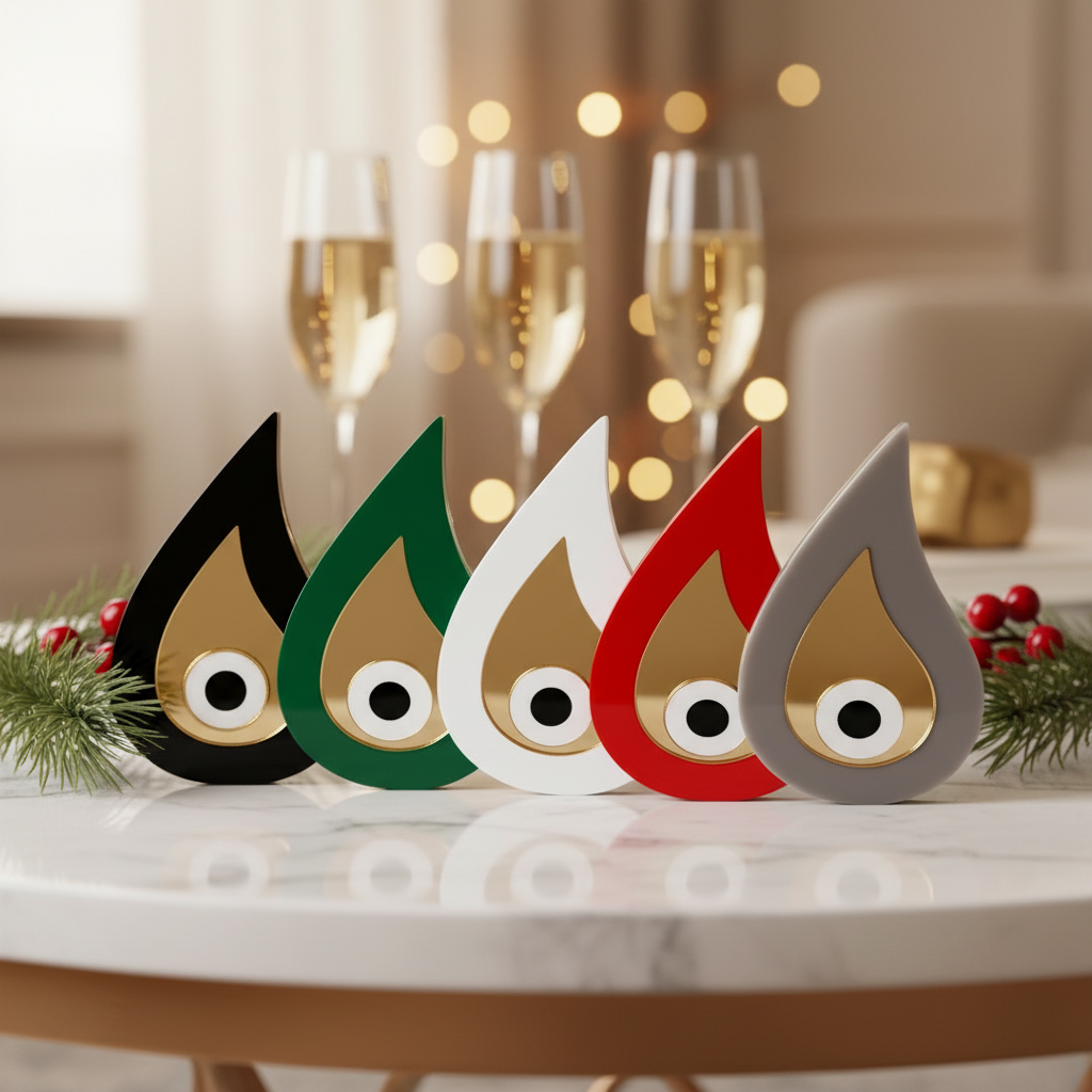 Το Golden Drop Eye είναι ένα χειροποίητο επιτραπέζιο γούρι από plexiglass, σε σχήμα σταγόνας με μάτι από χρυσό καθρέφτη. Ένα μοντέρνο αλλά και συμβολικό γούρι που προστατεύει από το κακό μάτι και φέρνει τύχη και θετική ενέργεια.